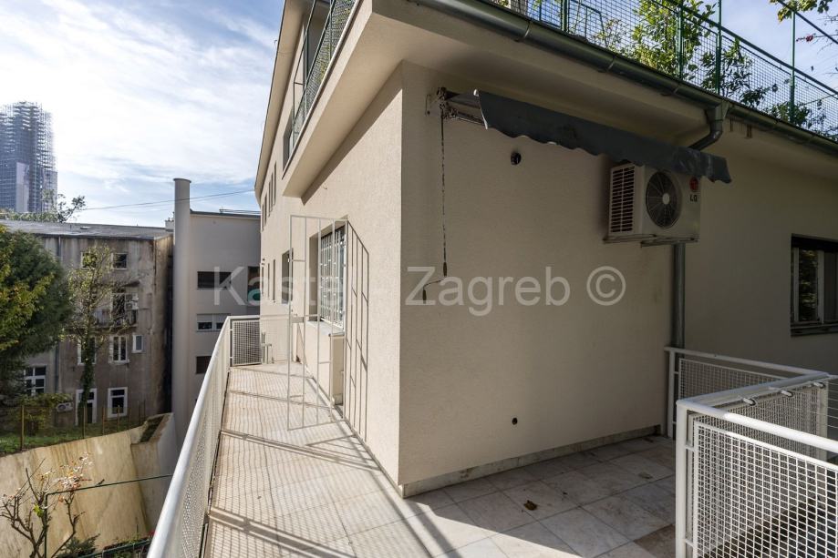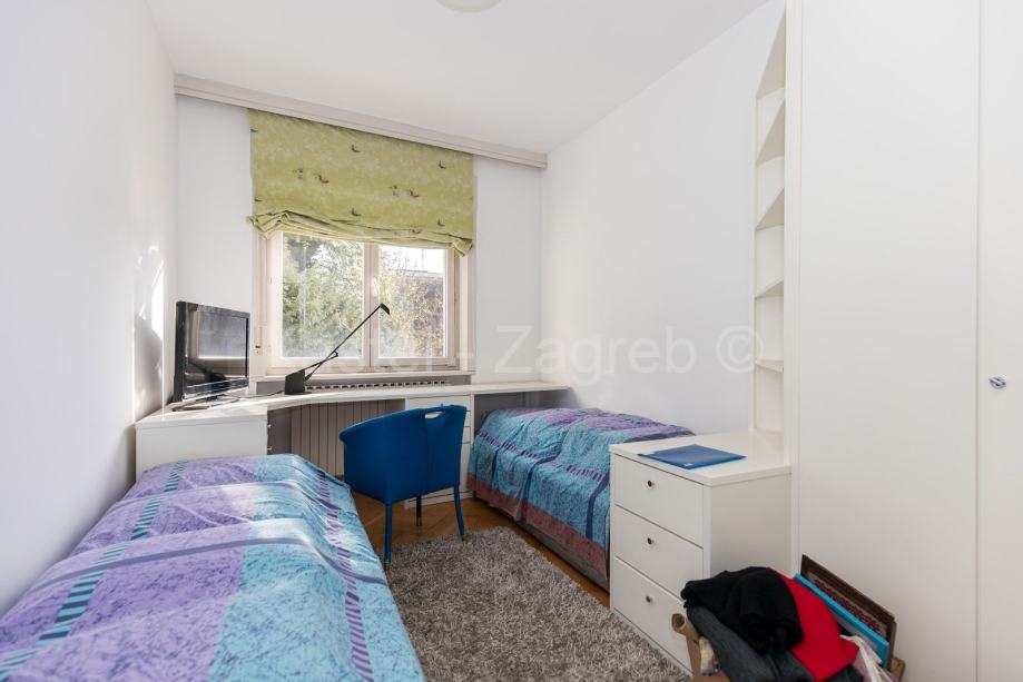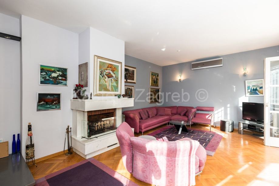 Uređen i opremljen četverosoban stan površine 144 m2 na 4.katu zgrade sa liftom. Stan se sastoji od tri spavaće sobe, dnevnog boravka s izlazom na nenatkrivenu terasu, kuhinje, izbe, kupaonice, Wc-a, halla i ulaznog hodnika. Stan je svijetao, pogled na mir i zelenilo, potpuno je opremljen i namješten. Zgrada se nalazi na jednoj od najljepših zagrebačkih lokacija, par minuta od Glavnog trga i Gornjeg Grada, u blizini škole, parkova, restorana, … Uz stan je moguće unajmiti i garažu po cijeni od 200 €/mj. Parkiranje moguće i u obližnjoj javnoj garaži.