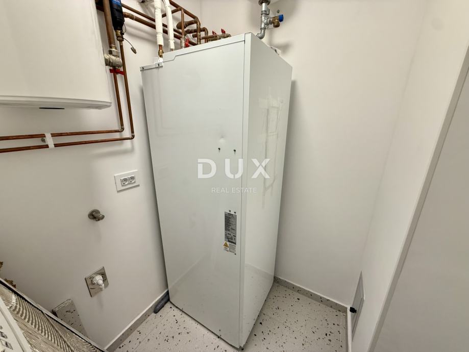 Zgrada je građena suvremenim materijalima i tehnologijama te je projektirana s visokom potresnom otpornošću. Stan ima podno grijanje putem dizalice topline, dodatni radijator u kupaonici te inverter klima jedinicu koja služi za dodatno grijanje i hlađenje. Svaka prostorija ima mogućnost zasebne regulacije temperature putem vlastitih termostata. U kupaonici su ugrađeni kvalitetni sanitarni elementi renomiranih proizvođača, uključujući walk-in tuš i konzolnu WC školjku.