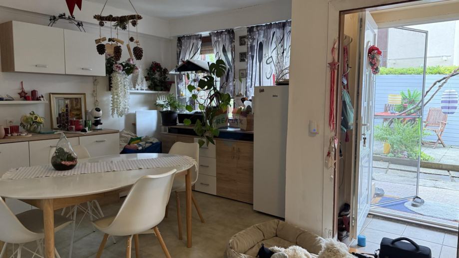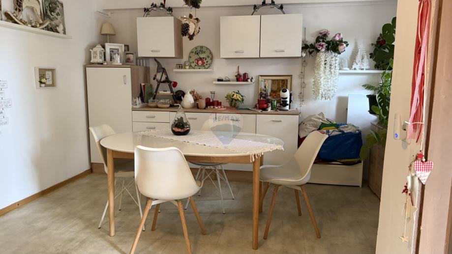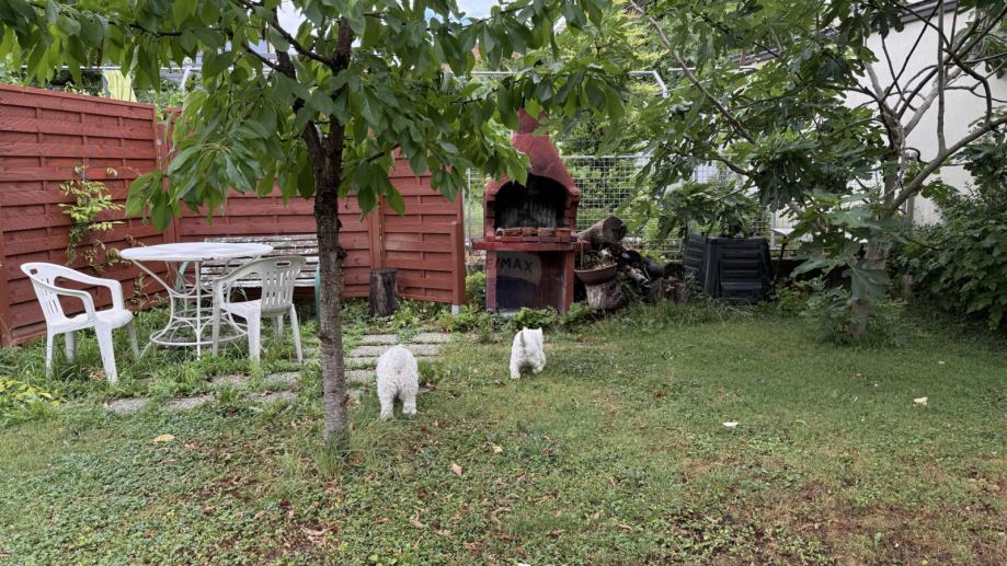 Na zemljištu se nalazi dvojna kuća koja se sastoji od potpuno uređenog i useljivog prizemlja, kata i tavana, garaže od 25 m2, šupe kaoi praktičnog dodatnog prostora za alat ili spremište te prekrasnog dvorišta i vrta.