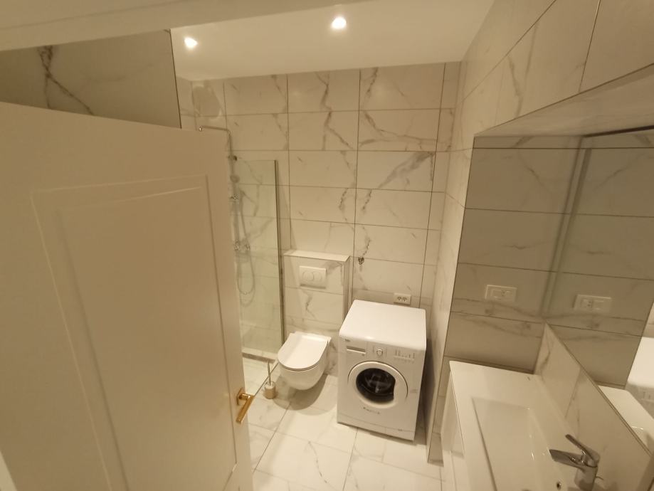 Ovaj prekrasan stan sastoji se od ulaznog hodnika, "open space" kuhinje s blagovaonicom i dnevnim boravkom,