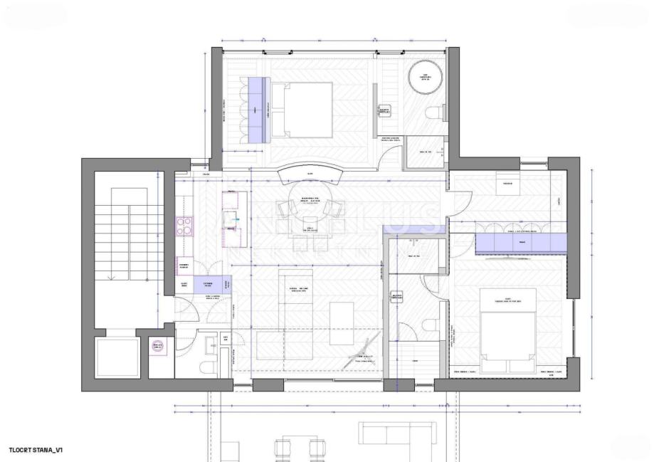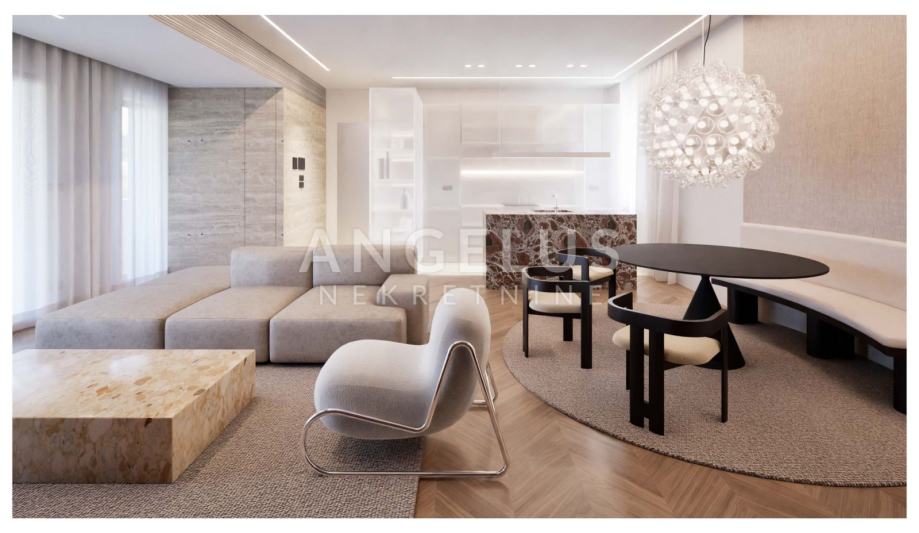 Stan je opremljen najmodernijim uređajima i opremom (vrhunska protuprovalna vrata na ulazu u zgradu i stan, najkvalitetniji parket, vrhunski kamen, video sustav 24h, najmodernija kuhinja opremljena s vrhunskim aparatima(.