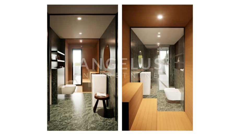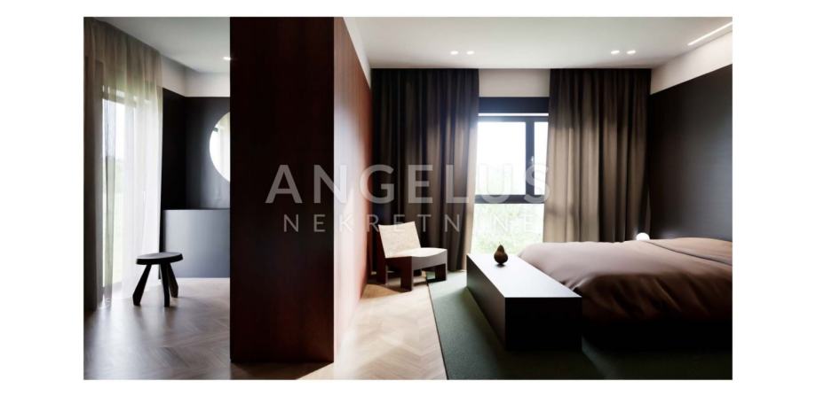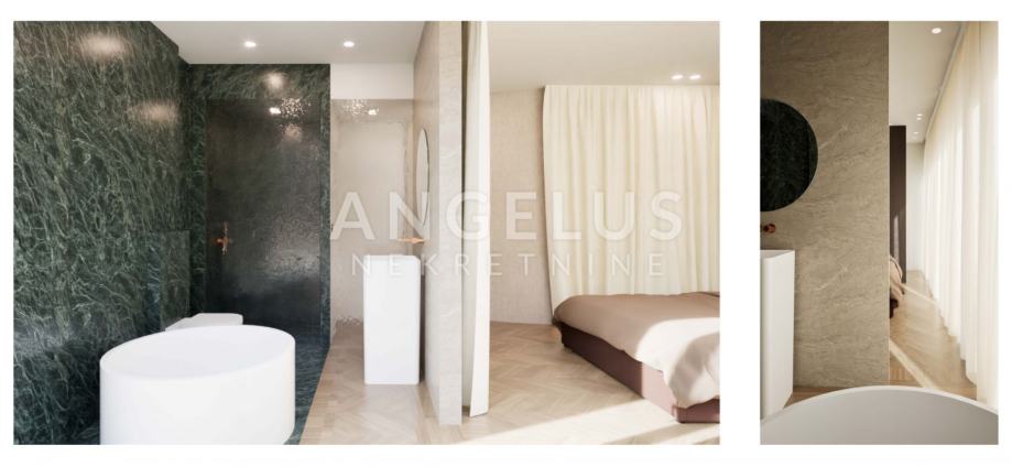 Iznajmljuje se luksuzan stan u modernoj urbanoj vili sa samo 3 stana. Stan se sastoji od: ulaznog prostora sa garderobom, prostranog dnevnog boravka, dvije spavaće sobe s kupaonicama, jedna spavaća soba ima izlaz iz kupaonice tj. saune na terasu gdje se nalazi hladna kupka, predivan pogled na grad i Katedralu sa velike natkrivene terase koja pruža 100% intimu i privatnost (50m2). Na -1 etaži nalaze se 2 parkirna mjesta koja pripadaju stanu i jedno vanjsko parkirno mjesto. Pristup stanu moguć je direktno iz garaže liftom do stana.