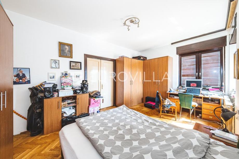 Sastoji se od ulaznog hodnika, dnevnog boravka s blagovaonicom i izlazom na balkon 4,94 m2, prostrane odvojene kuhinje s balkonom 1,69 m2, dvije spavače sobe, radne/spavače sobe, garderobe, kupaonice, gostinjskog wc-a i dodatnog balkona 4,58 m2. Stanu je potrebna potpuna renovacija.