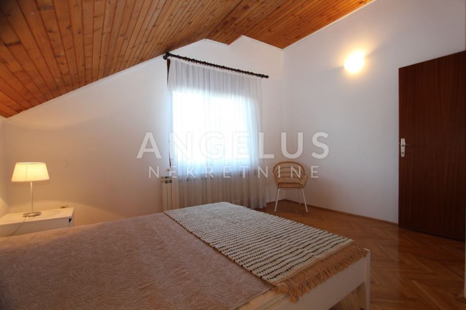 Iznajmljuje se četverosoban stan 120 m2 , dobrog rasporeda sa prekrasnim pogledom na grad . Nalazi se na drugom katu dobro održavane uredne kuće sa posebnim ulazom i parkirnim mjestom za 2 auta. Stan se sastoji od dnevnog boravka , kuhinje sa blagavaonicom , tri spavaće sobe , toaleta , kupaonice , velikog balkona . U vrtu se nalazi ostava za bicikle .
