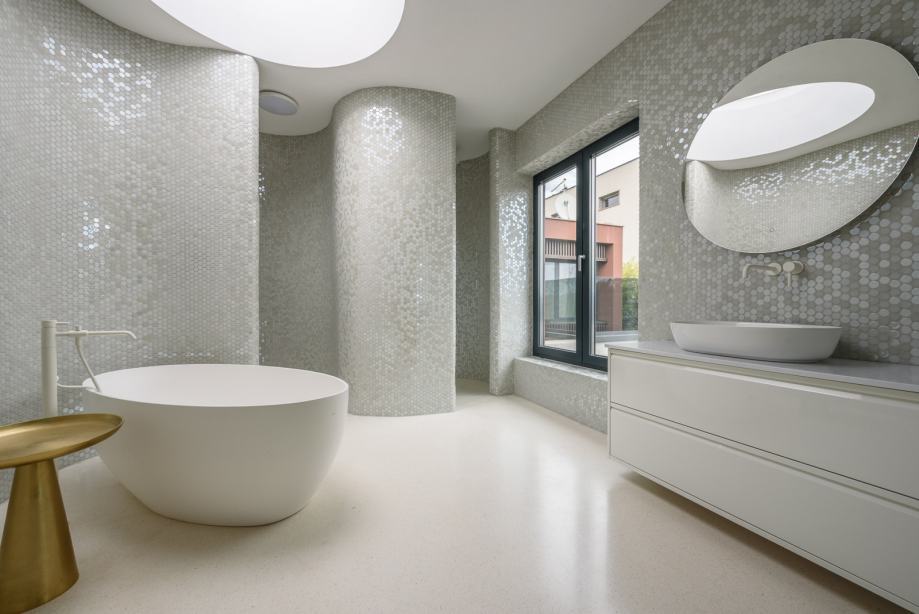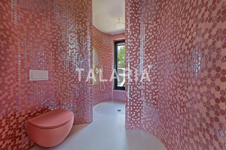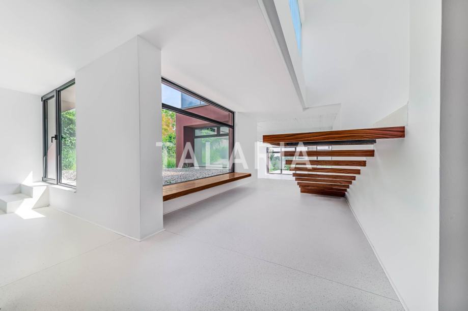 Moderna i maštovita arhitektura, vrhunski materjali, luksuzna oprema, protuprovalna pivot vrata, aluminijska stolarija, vrhunska keramika i sanitarije, bazen dužine 8,7 m a širine 4,8m, sobni otvoreni kamin. U cijelom objektu je provedeno podno grijanje a za završnu oblogu je izabran bijeli, fino brušeni terazzo. Klimatizirane sve prostorije. Smart home sistem. Napravljena priprema za ugradnju solarnih panela. Kuća ima natkriveni parking za 2 automobila u dvorištu. Krasi ju lijepi, ravni vrt i veliki bazen.