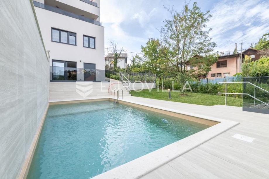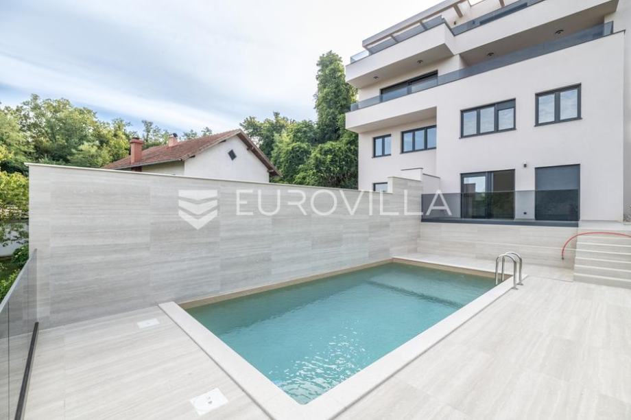 Zagreb. Šestine, luxurious two-storey four-bedroom apartment with swimming pool, NEW CONSTRUCTION, NKP 184 m2 located on the ground floor of a luxurious urban villa. The total closed area of the apartment is 150 m2.It consists of two floors:The first floor consists of an entrance hall from which...