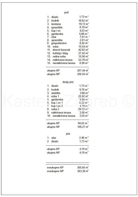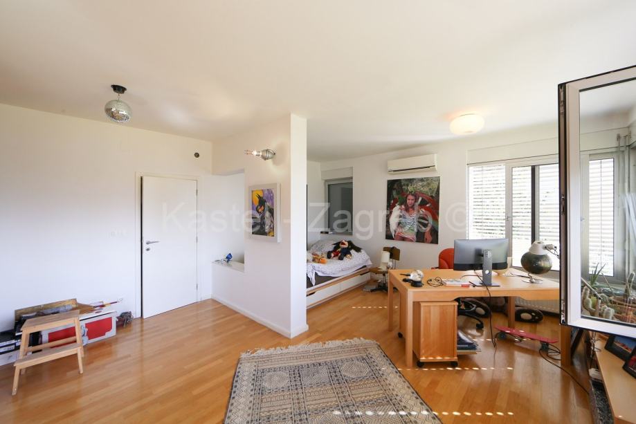 Šestine, Kulmerska ulica, luksuzan, višesoban dvoetažan stan obračunske površine 363m2, zatvorene 264 m2, smješten u urbanoj vili građenoj prema visokim standardima. Stanu pripadaju dva natkrivena parkirna mjesta od 34 m2 i pravo korištenja uređenog vrta 230 m2 u kojem se nalazi bazen11 x 3 metra. Ukupno obračunski NKP 322 m2.