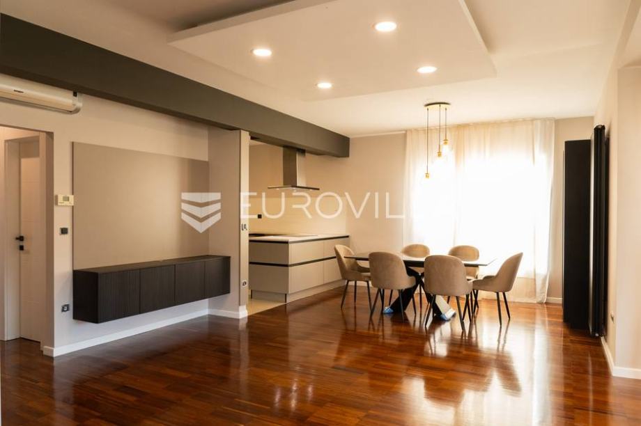 Luksuzan moderno uređen trosoban stan 120 m2. Ova stambena jedinica izvedena je po konceptu kuće u nizu s vlastitim ulazom, pružajući potpunu privatnost i ekskluzivnost.Sastoji se od predulaza koji vodi prema unutrašnjem hodniku, WC-a za goste, prostranog dnevnog boravka s velikim prozorima...