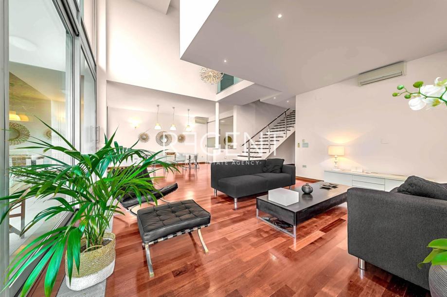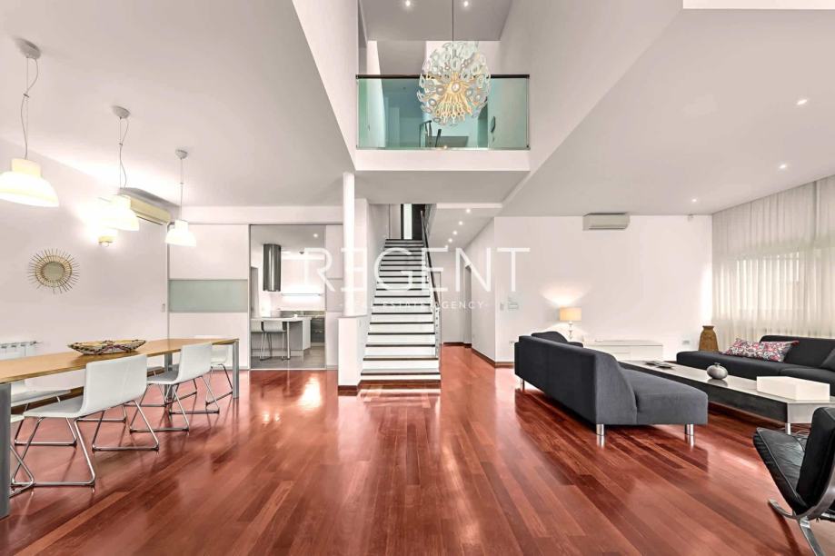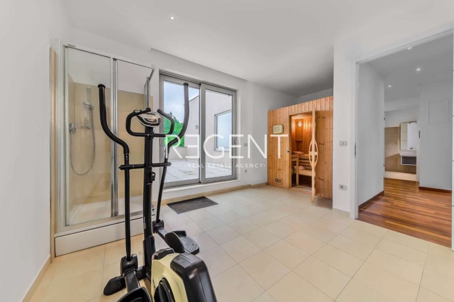 Kat uključuje ”master” spavaću sobu, kupaonicu, 2 terase i prostor s teretanom, saunom i tušem.