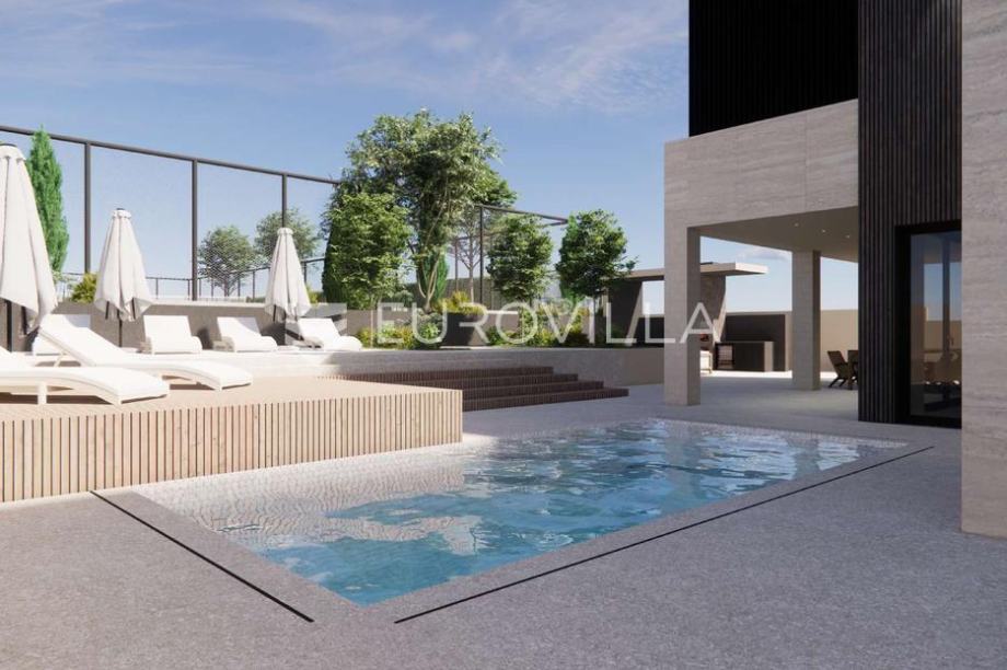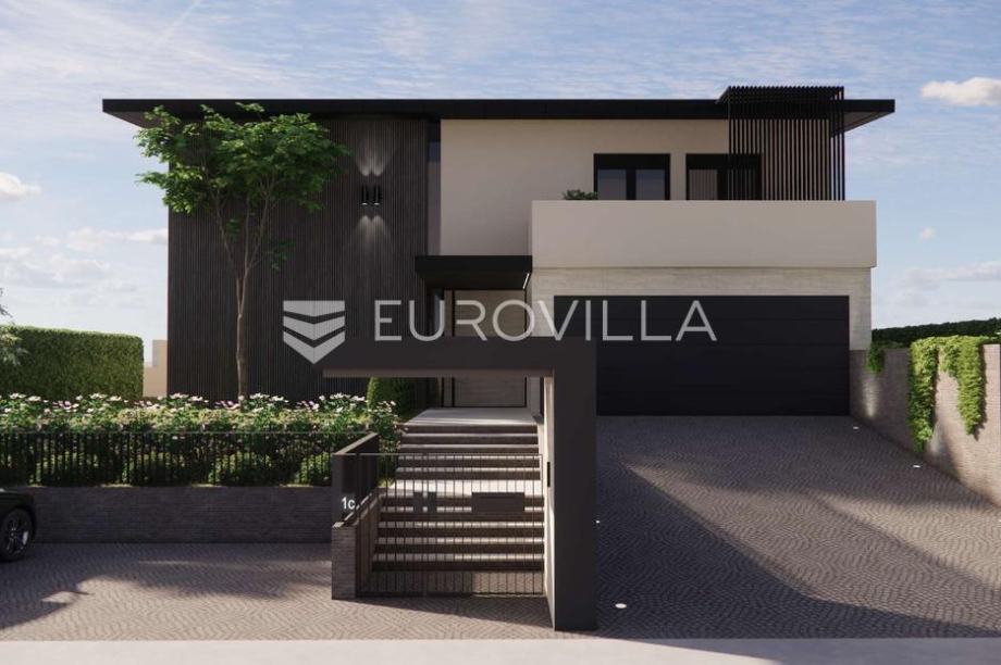 Zagreb, Šestine, a luxurious newly built villa with a GFA of 470 m2 and a garden of 1,367 m2 with a tennis court, a beautiful garden and an outdoor pool. The total plot area is 1,600 m2. Divided into two floors: Lower floor: entrance area, spacious open-plan living room with kitchen and dining...