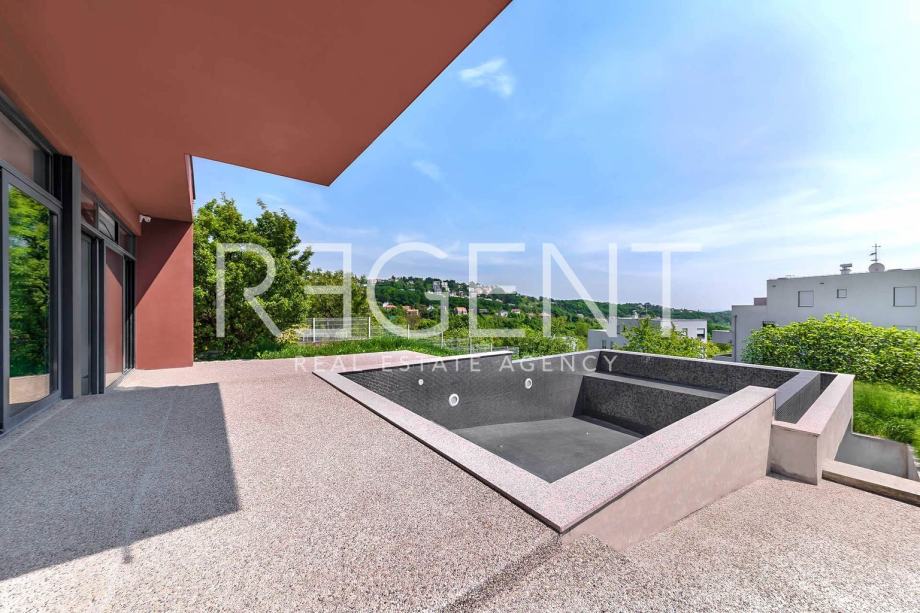 U mirnoj ulici podno Sljemena, na Šestinama, smjestila se potpuno novo adaptirana prekrasna moderna obiteljska vila s bazenom površine od 400 m2, koja se prostire na zemljištu 1530 m2. Kuća je opremljena najsuvremenijim materijalima, sadrži najkvalitetnije podne obloge terazzo, postoji priprema za ugradnju solarnih panela.Vila je dvoetažna, na prvoj etaži nalazi se prizemlje koje se sastoji od: ulaznog hodnika, gostinjskesobe s kupaonicom, prostranog dnevnog boravka, kuhinje s blagovaonicom, terase i bazena, vrta, vešeraja, sobe za domaćicu sa zasebnim ulazom.Na drugoj etaži nalazi se kat koji se sastoji od: master spavaćeg dijela s garderobom i kupaonicom te izlazom na terasu, prostranog dječjeg spavaćeg apartmana koji je moguće podijeliti na dvije spavaće sobe i kupaonicu.Kroz velike staklene stijene pruža se prekrasan pogled na zelenilo i bazen.Vila se nalazi na odličnoj mirnoj lokaciji koja je u blizini svih bitnih sadržaja, a istovremeno pruža potpunu privatnost i relaksaciju.Vila je namještena za najam. Cijena najma: 6000 eura.Za više informacija, kontaktirajte našeg agenta na brojeve telefona: