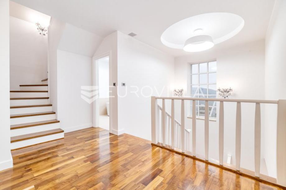 Zagreb, Šestine, prekrasna renovirana obiteljska vila površine 400 m2 s bazenom i predivnim vrtom, smještena na zemljištu 962 m2. Nalazi se na odličnoj lokaciji, okružena zelenilom s prekrasnim pogledom.Razvedena u 4 etaže i povezana liftom:Prizemlje: garaža za 2 automobila, sauna, wc i...