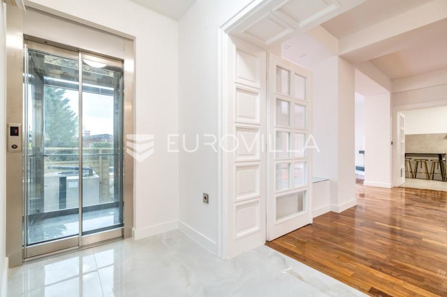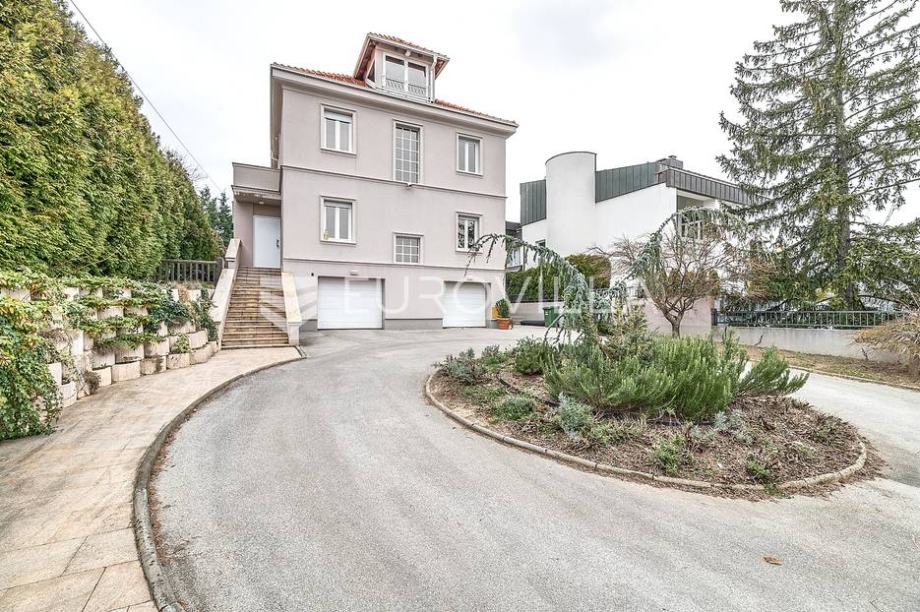 Zagreb, Šestine, beautiful renovated family villa of 400 m2 with a swimming pool and a beautiful garden, located on a plot of 962 m2. It is located in a prime location, surrounded by greenery with a beautiful view. Divided into 4 floors and connected by an elevator: Ground floor: garage for 2...