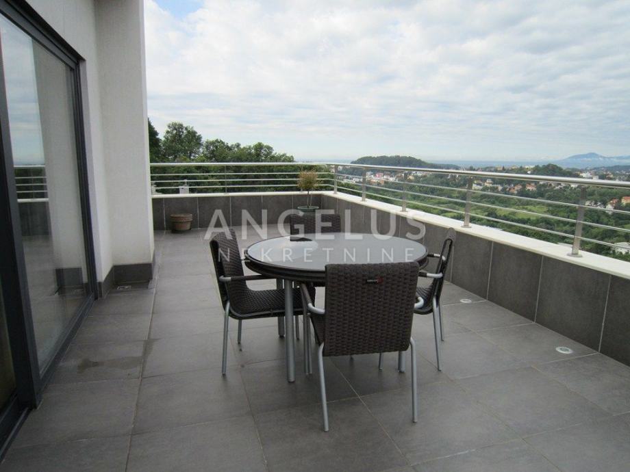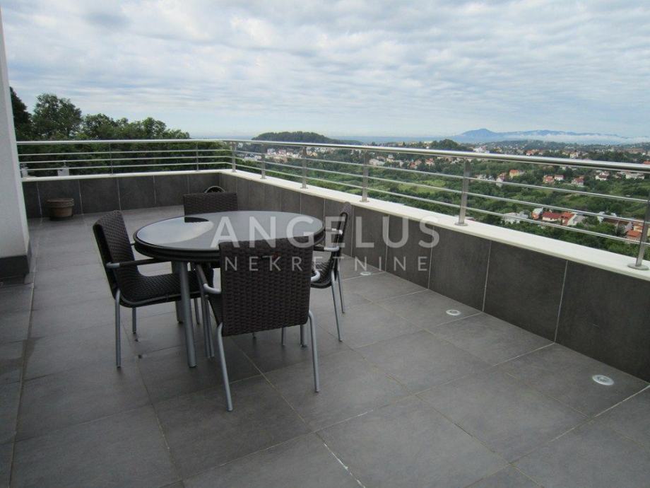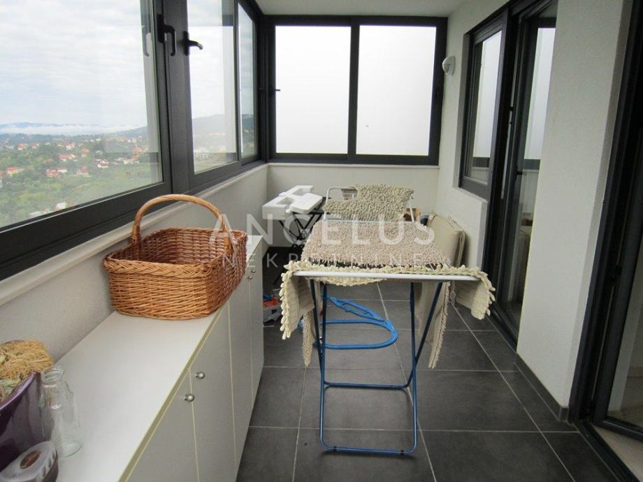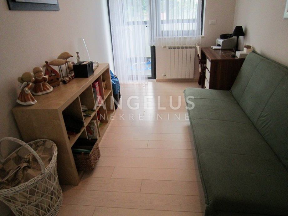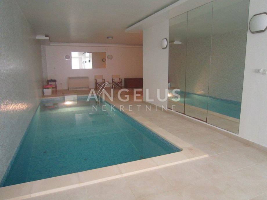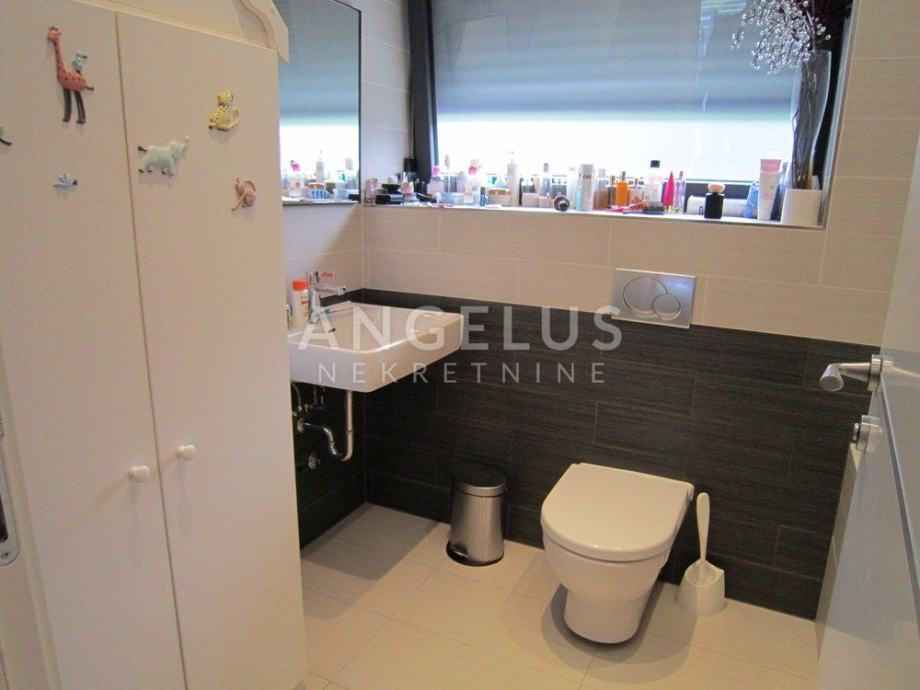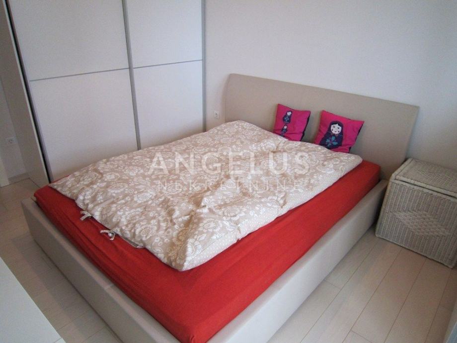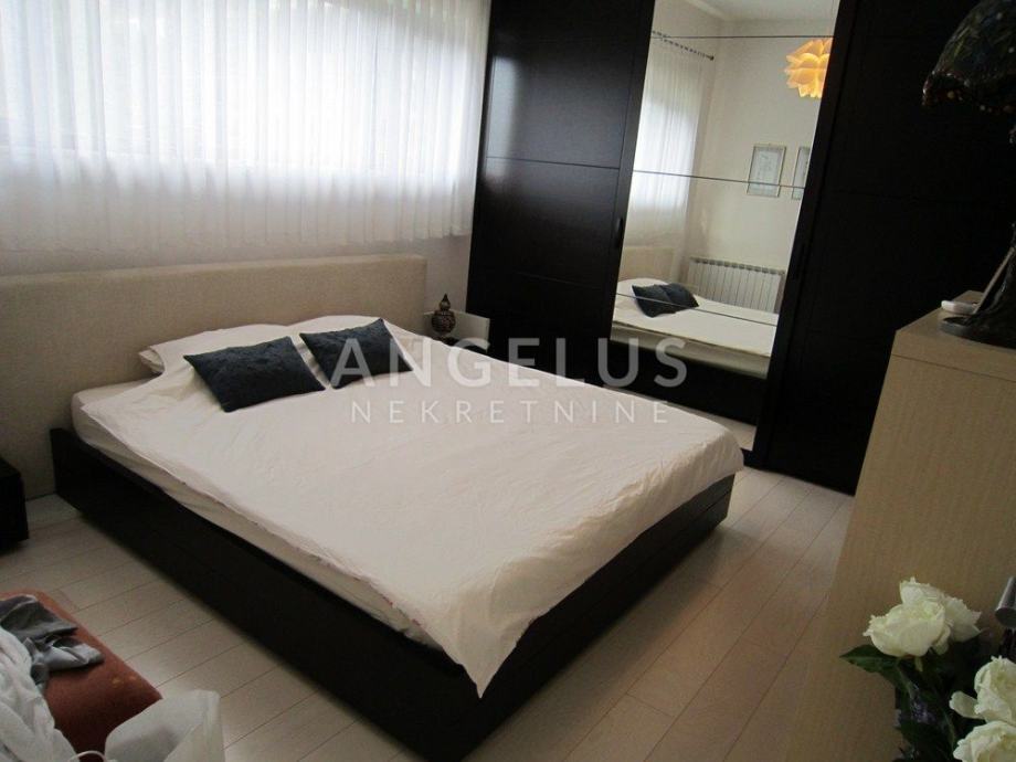 Vrlo lijepi noviji stan stambene površine 130 m2, nalazi se na 2. ( zadnjem) katu novije zgrade sa liftom. Sastoji se od ulaznog prostora, 3 spavaće sobe, kupaonice, toaleta, spremišta, kuhinje sa blagovaonicom i dnevnog boravka, dvije terase i balkona. Pripadaju mu 2 parkirna mjesta i ima mogućnost korištenja unutarnjeg bazena u prizemlju zgrade.