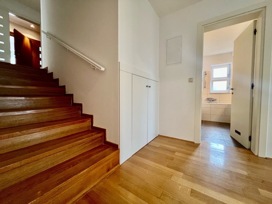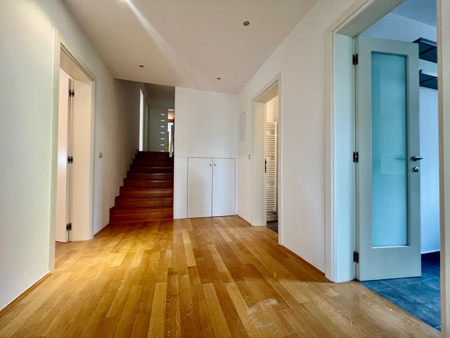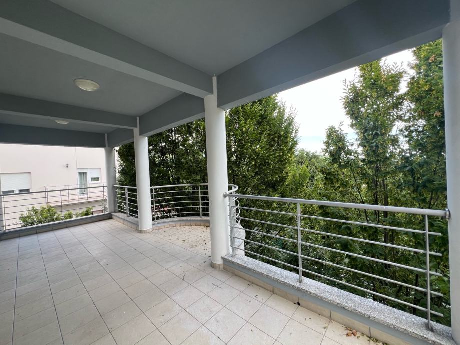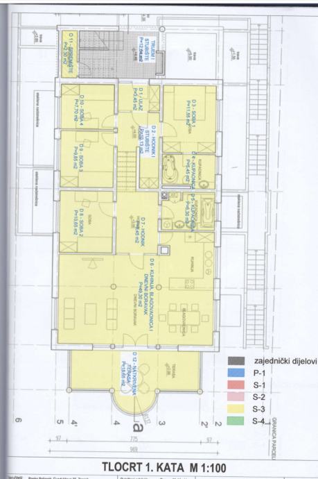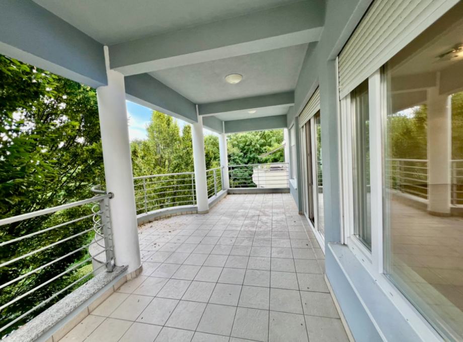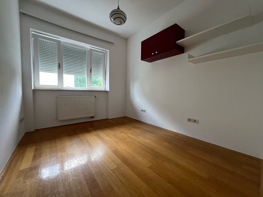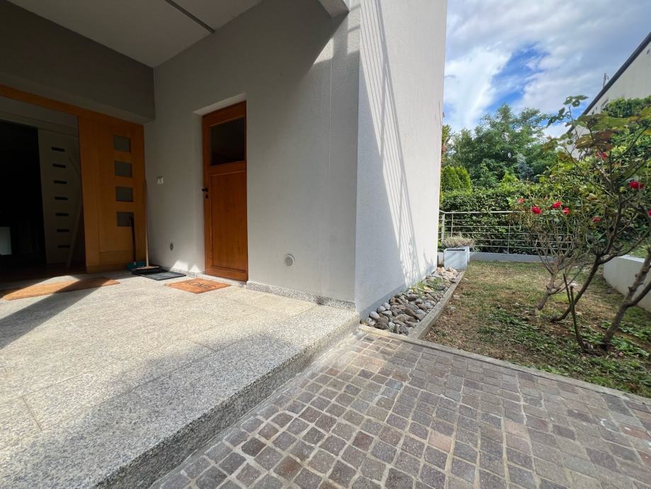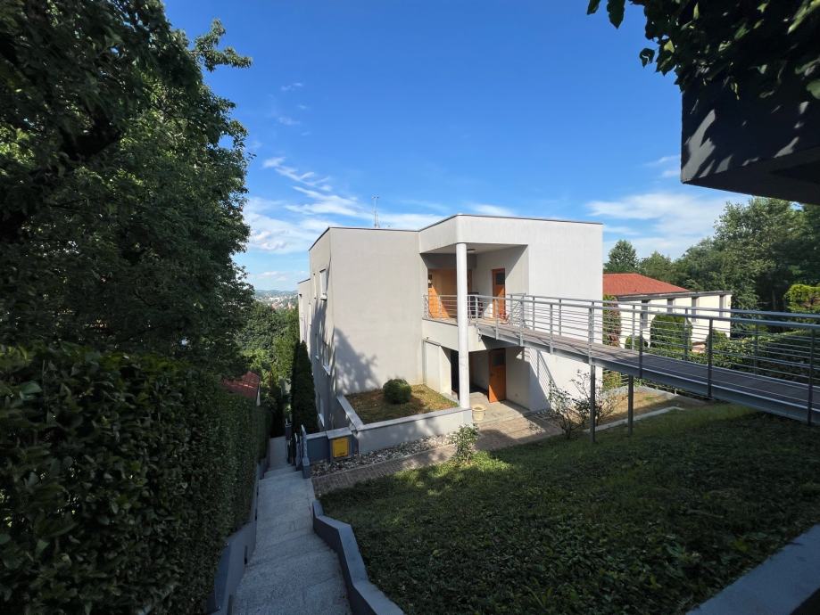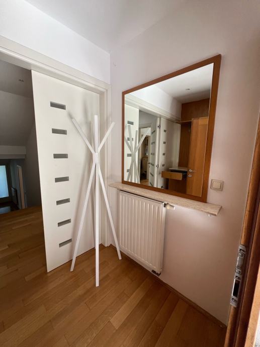 Nalazi se u manjoj urbanoj villi novije gradnje na 1 katu a sastoji se od ulaznog prostora sa garderobom, master spavaće sobe sa vlastitom kupaonicom i toaletom, 2 spavaće sobe, radne( manje spavaće) sobe ,dodatne kupaonice sa toaletom, kuhinje sa dnevnim boravkom i blagovanjem otvorenog tlocrta sa izlazom na prostranu natkrivenu terasu sa koje se pruža pogled na zelenilo i šumu.