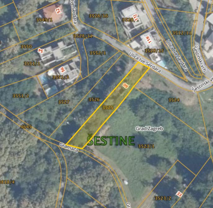 Atraktivno građevinsko zemljište sa upisanom kućom 91 m2 Zagreb (Šestinski vrh), 1024 m2(12,5 m x 82 m ) ulica Ive Serdara 60, prekrasan pogled na Zagreb ,južna strana ulice, na zemljištu započeta novogradnja obiteljske kuće oko stare montažne kuće, autobusna stanica na par minuta, komunalije uz zemljište, izlaz na dvije ceste - Ive Serdara i Gramaču .Uredno vlasništvo , nedavno geodetski izmjereno i usklađeno sa knjigama. Zemljište se nalazi u stambenoj zoni.Moguća zamjena za stan.