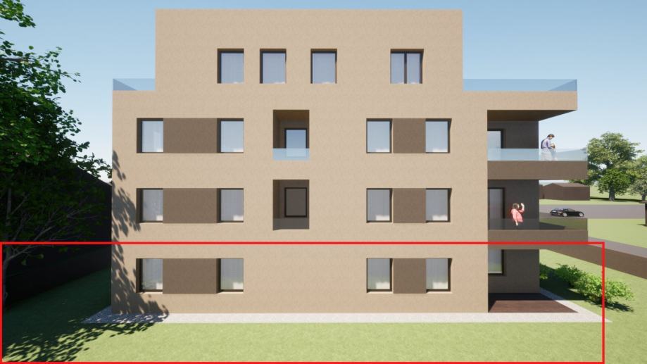 - Zagreb, Sesvetski Kraljevec, trosoban stan u prizemlju od 95.63 m2, u novogradnji zajedno s vrtom i vanjskim parkirnim mjestom.
