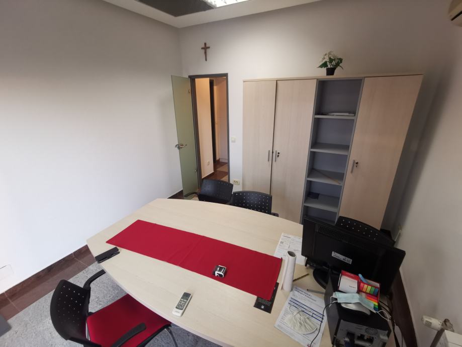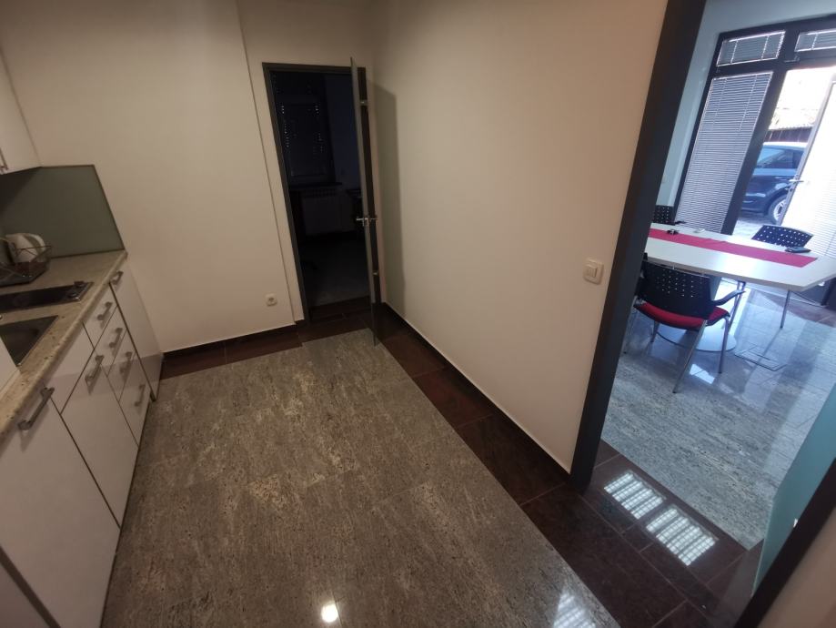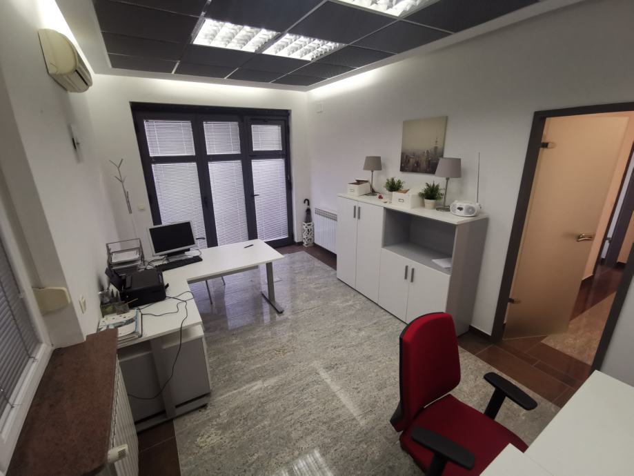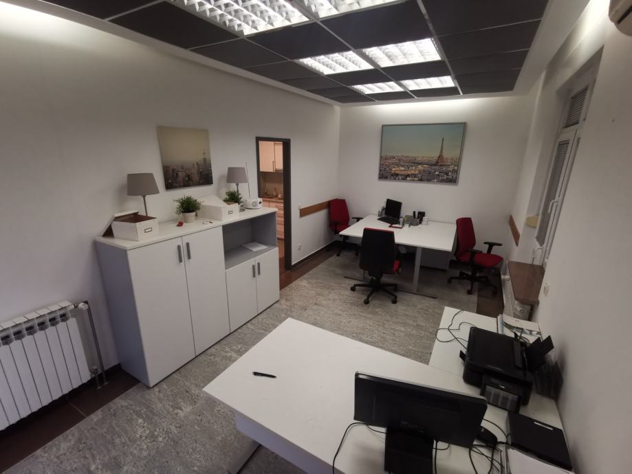 Prostor se sastoji od dvije uredske prostorije sa više radnih pozicija, prostrane čajne kuhinje sa više ormara za odlaganje, sanitarnog čvora sa tušem te 2 parkirna mjesta u dvorištu objekta.