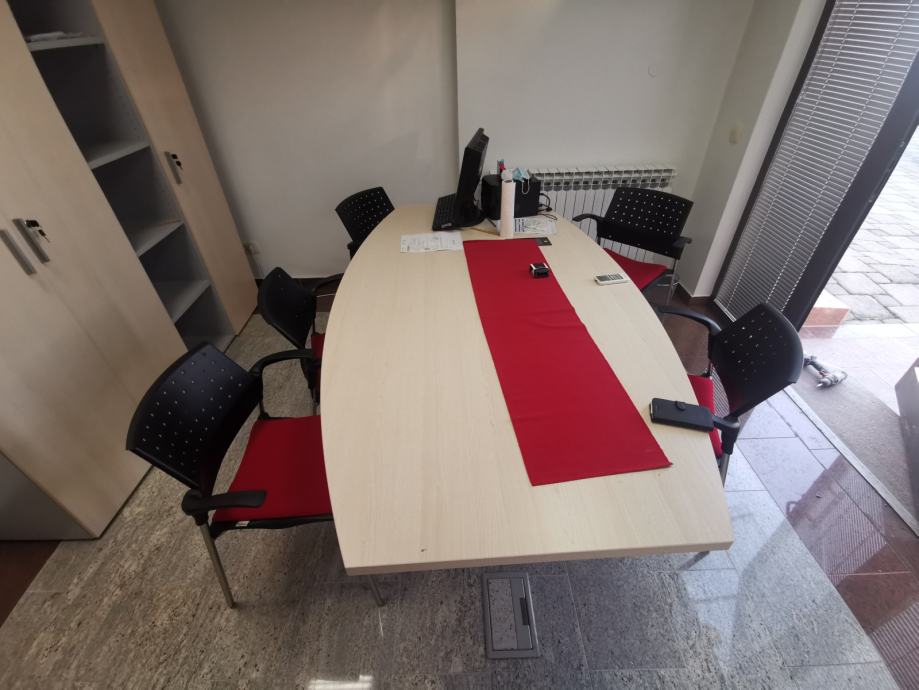Prostor je potpuno opremljen novijim, skoro nekorištenim namještajem - stolovi rađeni po mjeri, stolice, ormari, razvedena informatička mreža, podovi kamen, spušteni strop, led rasvjeta, indirektna rasvjeta, Alu-stolarija sa velikim staklenim stijenama - jako puno dnevne svjetlosti, klima uređaji, centralno grijanje,..sve režije se plaćaju prema potrošnji.