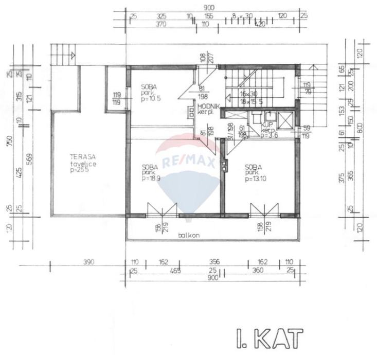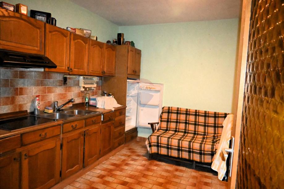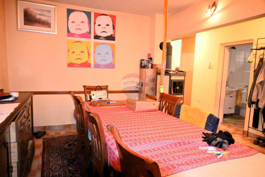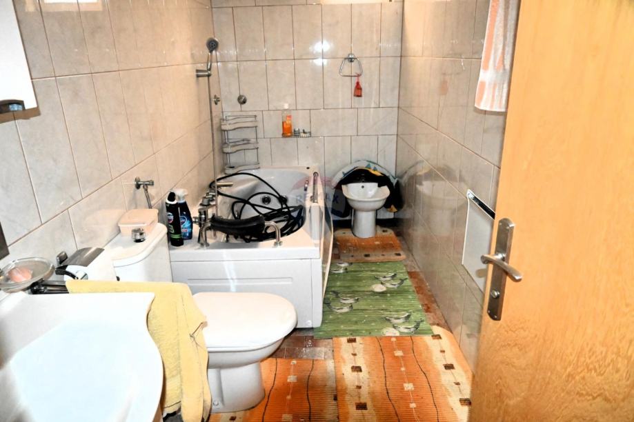 Na 1. katu su 3 spavaće sobe i kupaonica. Neuređeno potkrovlje, dovoljno visoko da se može iskoristiti sav prostor, a zbog dodatnog ulaza u kuću moguće je dobivanje dodatnog stana