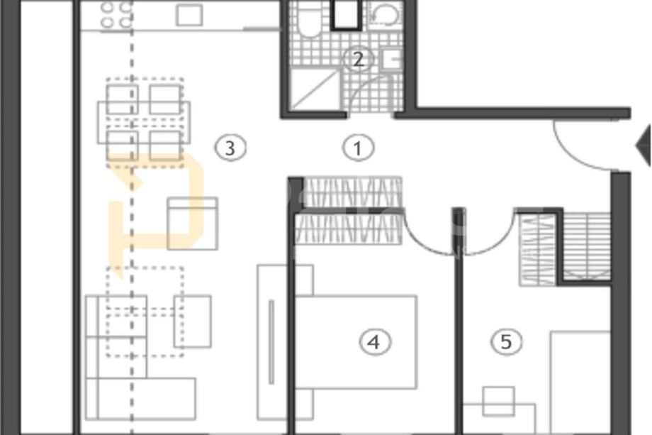 Stan se sastoji od šest spavaćih soba, dvije kupaonice, te dva prostrana dnevna boravka s kuhinjom i blagovaonicom.