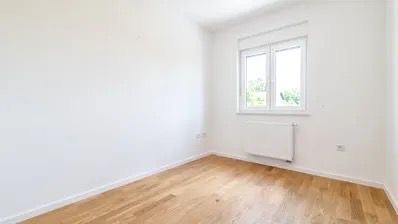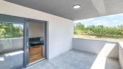 Sastoji se od otvorenog dnevnog boravka s blagavaonicom i kuhinjom,četiri spavaće sobe,dvije kupaonice s WC-om,hodnika i velike terase. Uz stan dolaze dva vanjska parkirna mjesta. U neposrednoj blizini nalaze se svi bitni sadržaji-autobusna stanica,trgovina,kafić,park,vrtić,škola i sve što je potrebno za udoban život.