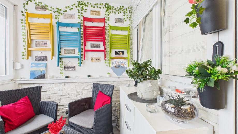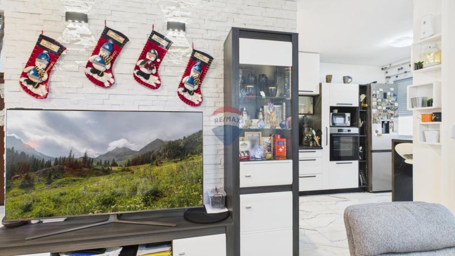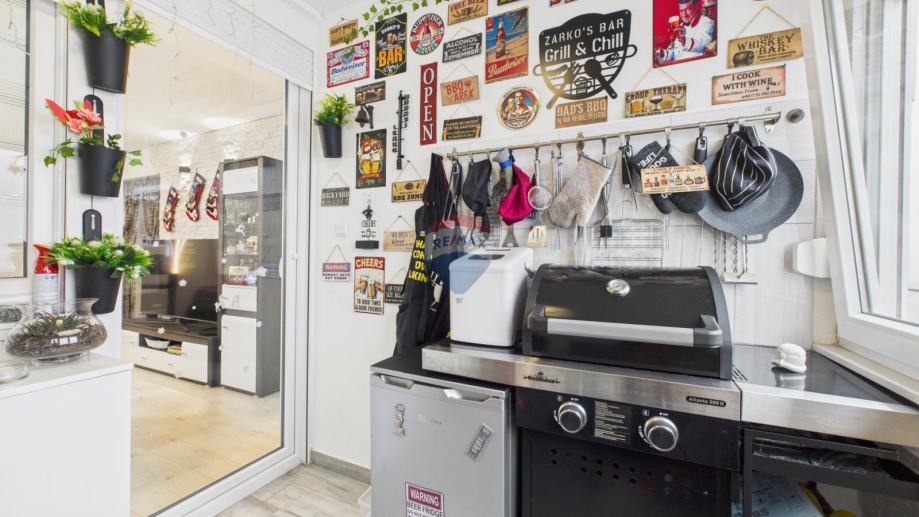 Zahvaljujući dvostranoj orijentaciji sjever–jug, stan je ispunjen prirodnim svjetlom tijekom cijelog dana. Funkcionalnog tlocrta, sastoji se od ulaznog hodnika, dnevnog boravka s blagovaonicom, zasebne kuhinje rađene po mjeri, dvije spavaće sobe – veće roditeljske i manje dječje ili radne – predsoblja te kupaonice s WC-om i tuš kabinom. Poseban ugođaj stanu daje zatvorena, potpuno uređena lođa s roštiljem, idealna za jutarnju kavu, večernja druženja i opuštanje s obitelji i prijateljima tijekom cijele godine.