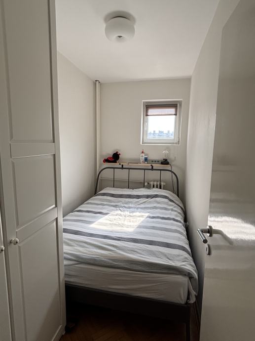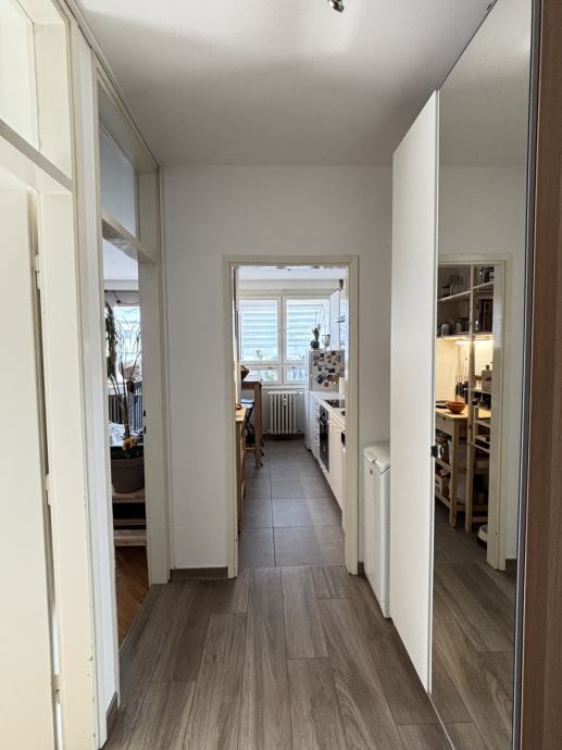 Stan je orijentiran na jug i zapad, pun prirodnog svjetla, a sastoji se od ulaznog hodnika, kupaonice, kuhinje, spavaće sobe i dnevnog boravka te zatvorenog balkona (2019. ugrađena PVC stolarija), stanu pripada i spremište u suterenu zgrade.