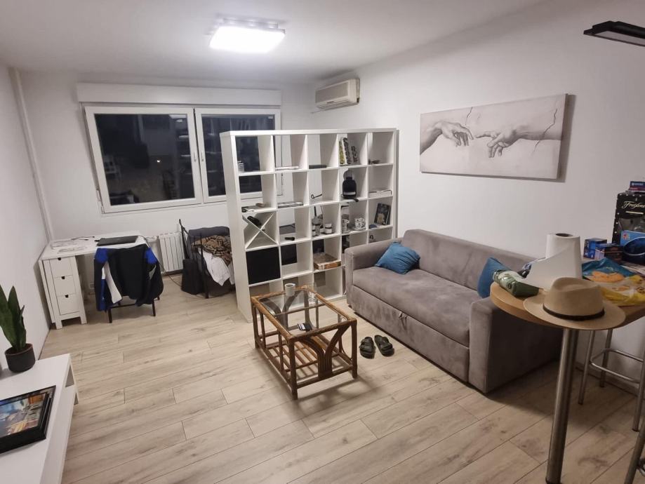 Iznajmljujem stan / garsonjeru - 30 m2, na 1 katu , koji se sastoji od: ulaznog hodnika, sobe spojene sa kuhinjom, kupaone sa tuš kadom i wc-om i vešmašinom.