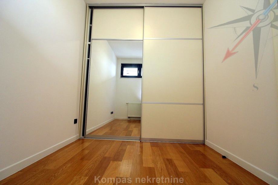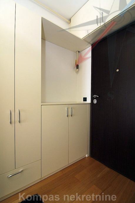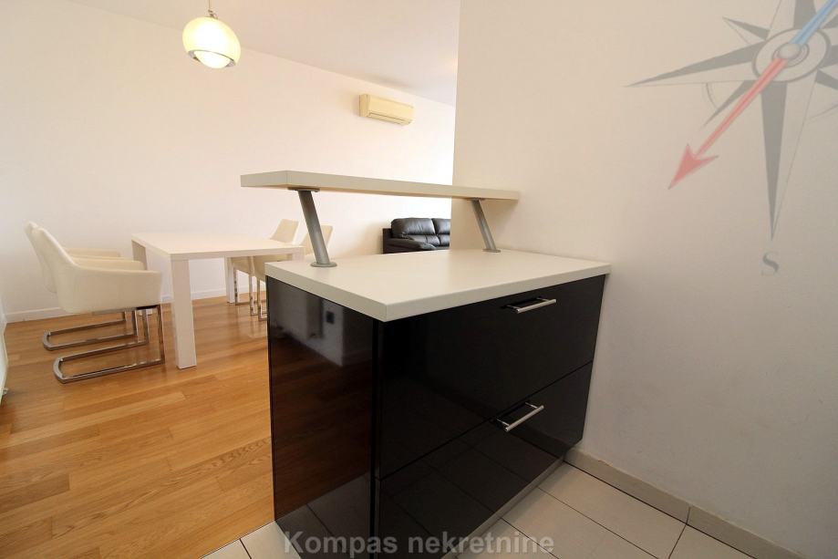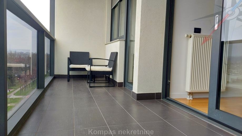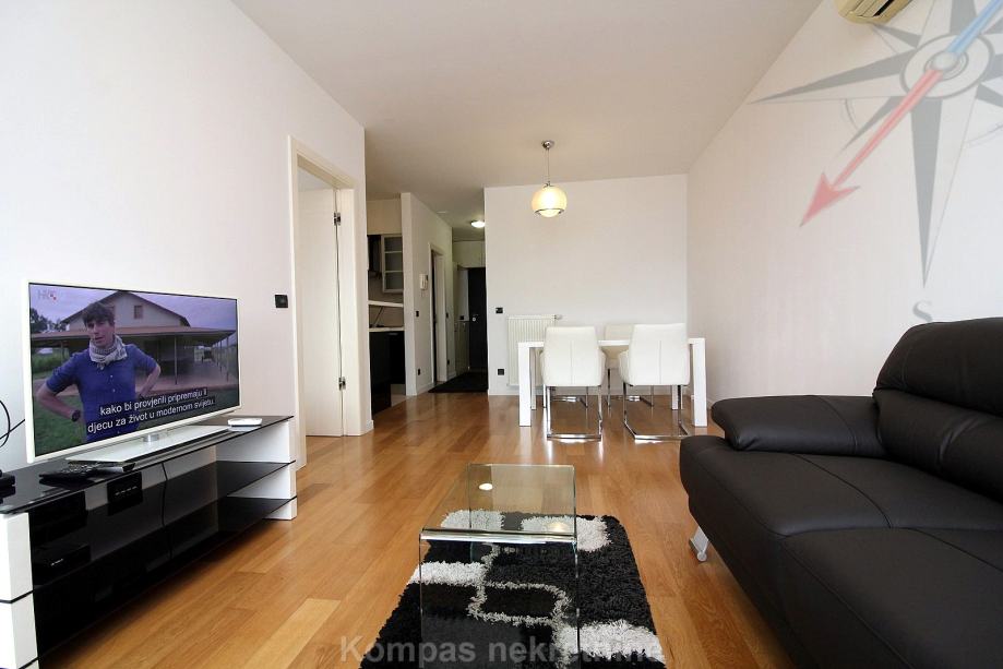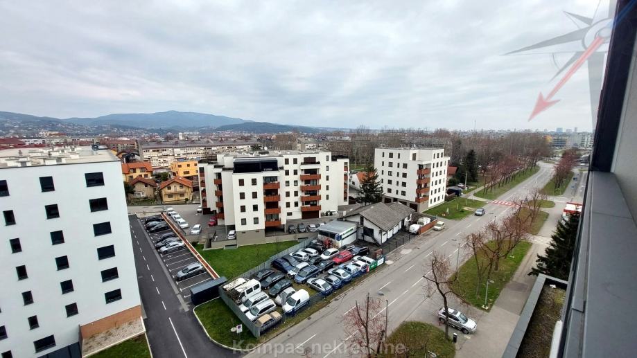 Renovated, furnished three-room apartment (68 m2) on the sixth floor of a residential and commercial building, Nova galerija, Špansko. Consists of an entrance area, living room, two bedrooms, kitchen, bathroom, loggia. It has security door, air conditioning, central gas heating, optical internet. The bedrooms will be furnished according to the tenant's needs. The apartment has a storage room and one parking space in the garage on the -3rd floor of the building. The building has a freight and passenger elevator. Pets are not allowed. The building reserve for the apartment is 40 euros. Located near bus and tram lines, shopping centers, restaurants. The owner is asking for a minimum two-year lease and two deposits.