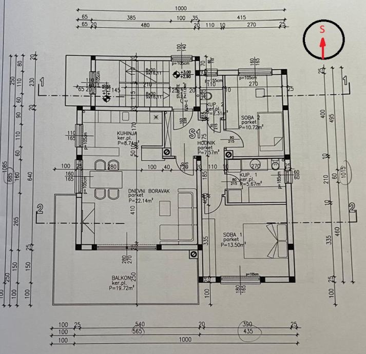 - Stan na 1. katu nudi ulazni prostor, prostrani dnevni boravak open space verzije, odličnog razmještaja, iznimno svijetao, balkon, dvije spavaće sobe, kupaona, zaseban WC te vanjsko parkirno mjesto.