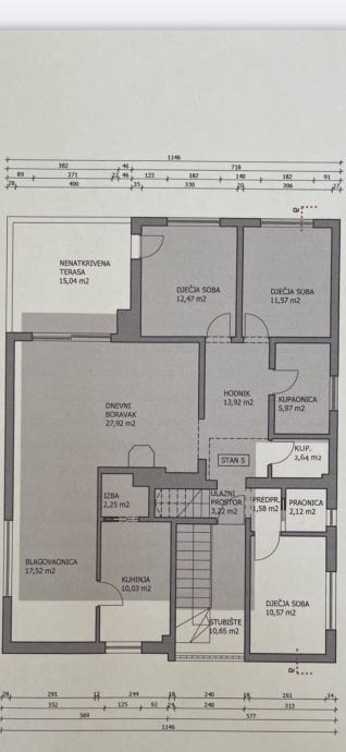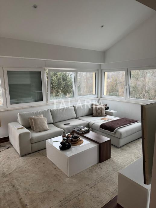 Nenamješten dvoetažan stan od 240m2 na na drugom katu zgrade građene 1997 god. Stan se sastoji od ulaznog dijela, 2 dnevna boravka, kuhinje i blagovaonice, ostave, 4 spavaće sobe, garderobe, 3 kupaonice, predsoblja te 2 terase. Pripada mu jedno garažno mjesto i jedno parkirno mjesto. Nalazi se na odličnoj lokaciji, Srebrnjak, u blizini svih bitnih sadržaja.