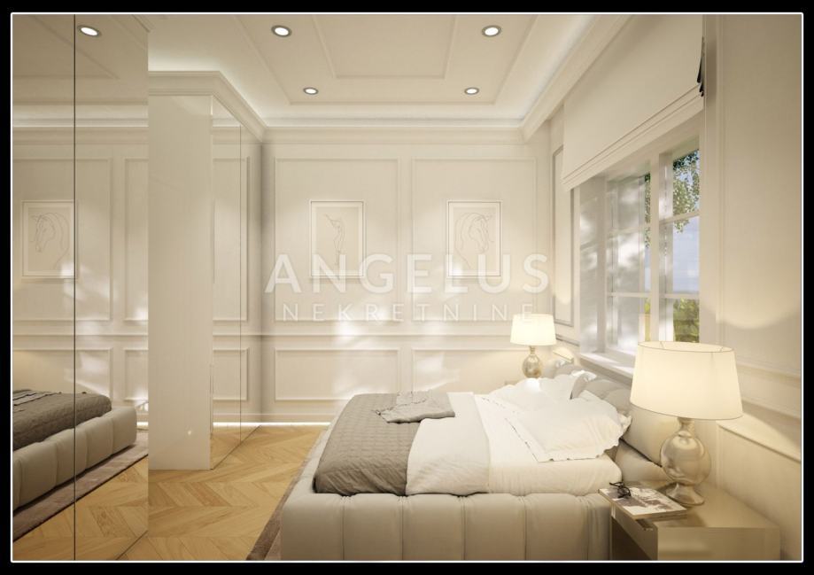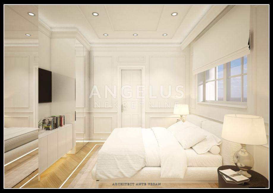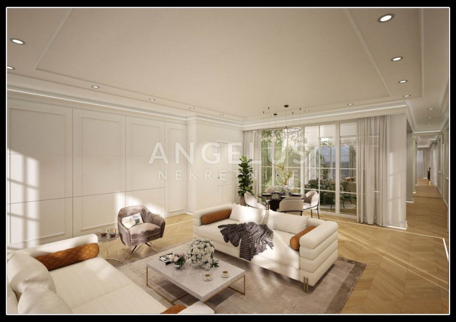 Ovaj luksuzni stan površine cca 180m2 nalazi se u vili (novogradnja) s dva stana i podzemnom garažom. Vila je smještena na parceli površine 600m2.