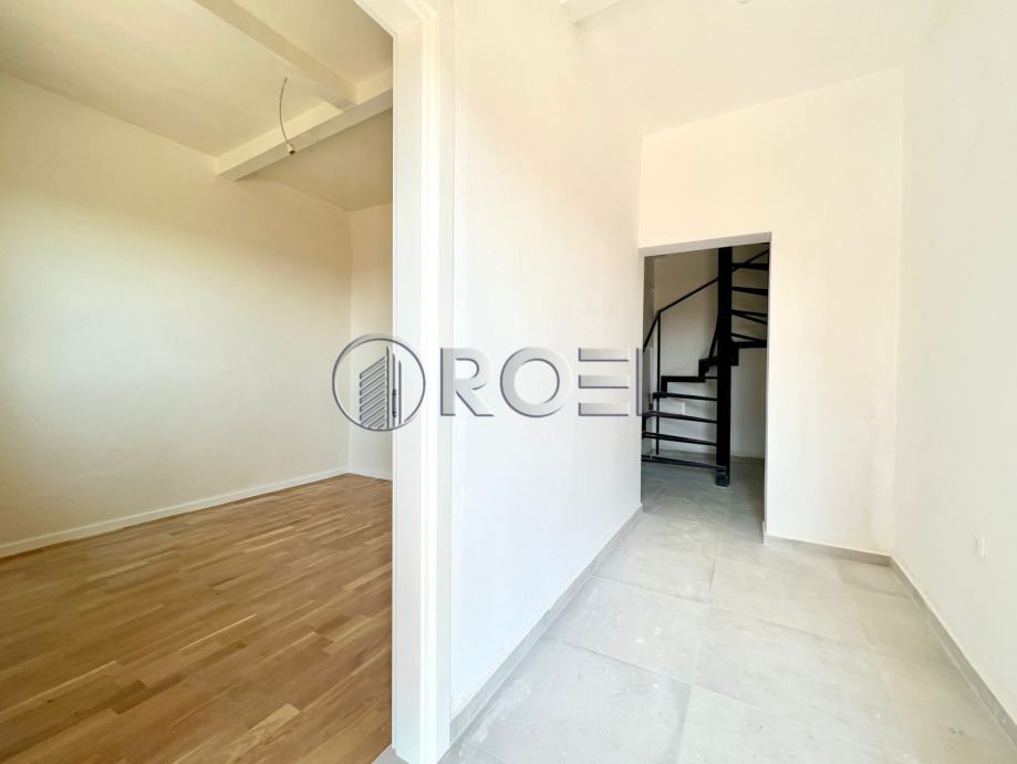 U ponudi je funkcionalno organiziran dvoetažni stan smješten u mirnom i traženom dijelu zapadnog Zagreba. Stan se nalazi u prizemlju i na prvom katu stambene zgrade te je koncipiran tako da jasno razdvaja spavaći i dnevni dio, što omogućuje ugodno i praktično svakodnevno korištenje prostora.U prizemlju stana smještena je jedna spavaća soba te kupaonica s WC-om. Iz prizemlja se unutarnjim stepenicama pristupa gornjoj etaži, gdje se nalazi dnevni boravak povezan s kuhinjom, druga spavaća soba te izlaz na balkon. Gornja etaža predstavlja glavni stambeni dio stana, s dovoljno prirodnog svjetla i funkcionalnim rasporedom prostorija.
