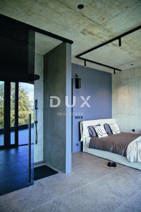 Kuća je projektirana kao open space prostor s visokim stropovima i galerijom, dok velike staklene stijene propuštaju obilje dnevne svjetlosti i dodatno naglašavaju osjećaj prozračnosti i povezanosti s vanjskim prostorom. Uređena je u industrijskom stilu, gdje se sirovi materijali i minimalizam skladno isprepliću s elegantnim detaljima i suvremenom tehnologijom. Prizemlje obuhvaća prostrani dnevni boravak s izlazom na natkrivenu terasu, kuhinju i blagovaonicu, dok se na katu nalazi glavna spavaća soba s izlazom na terasu, moderno uređena kupaonica s walk-in tušem te dodatna višenamjenska soba.