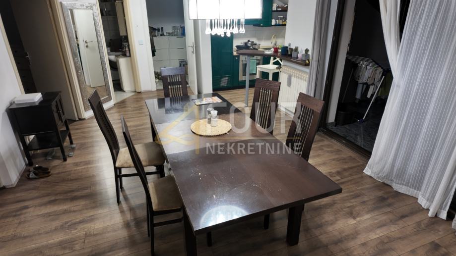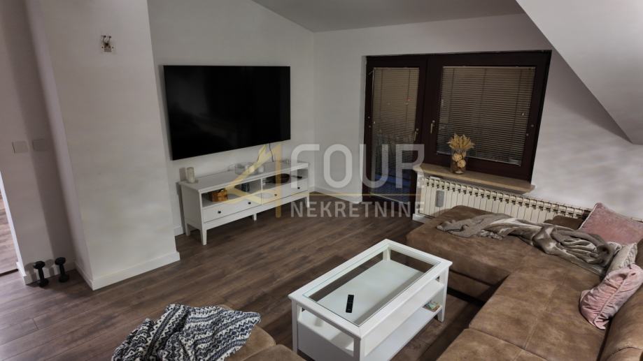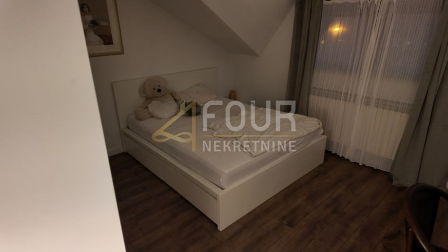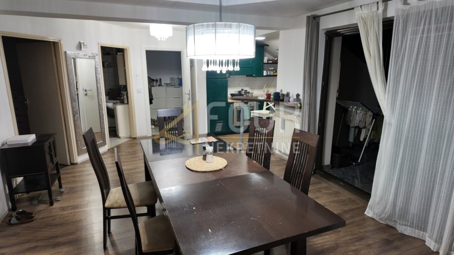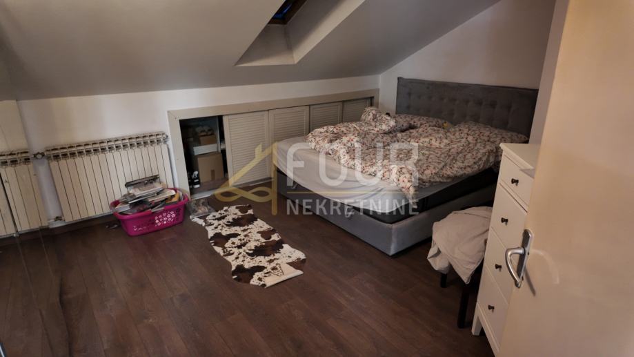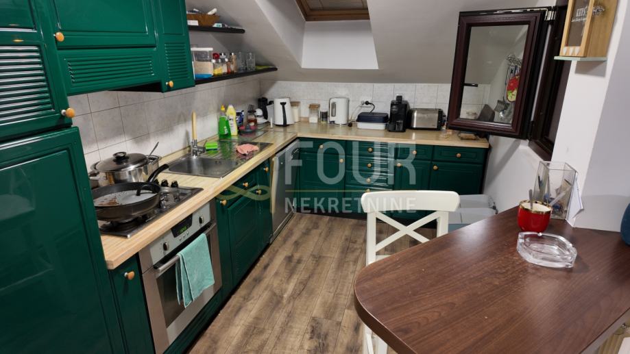 Potkrovni stan je funkcionalan i uredan, s velikim natkrivenim balkonom zapadne orijentacije koji pruža ugodan prostor za odmor.
