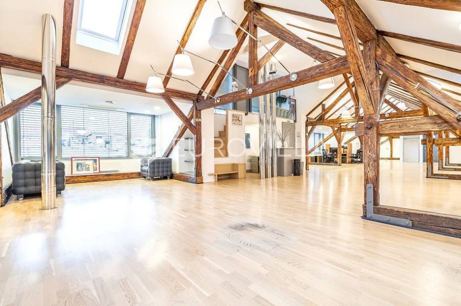 Draškovićeva, stambeno/poslovni prostor 244 m2 na 3. katu (potkrovlje) odlično održavane zgrade bez lifta unutar pješačke zone. Moderno uređen, visoki stropovi, puno danjeg svijetla. Sastoji se velikog otvorenog prostora, 4 prostorije odvojene staklom, kuhinje, dva sanitarna čvora (jedan s...