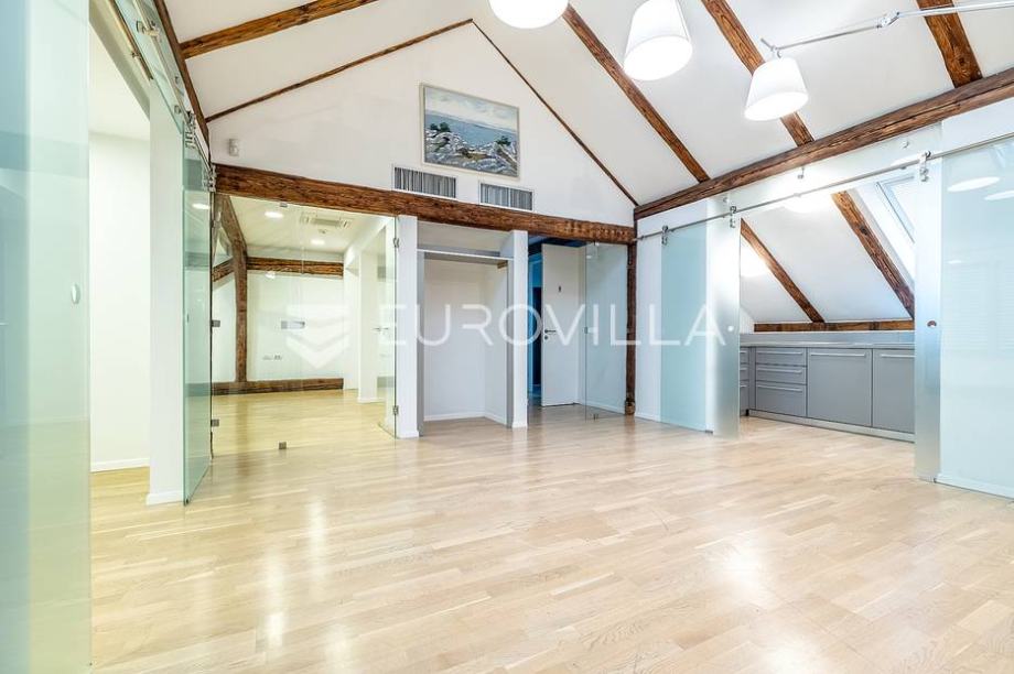 Draškovićeva, residential/business space 244 m2 on the 3rd floor (attic) of a well-maintained building without an elevator within the pedestrian zone. Modernly decorated, high ceilings, lots of natural light. It consists of a large open space, 4 rooms separated by glass, a kitchen, two bathrooms...
