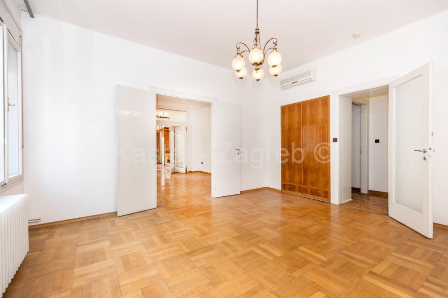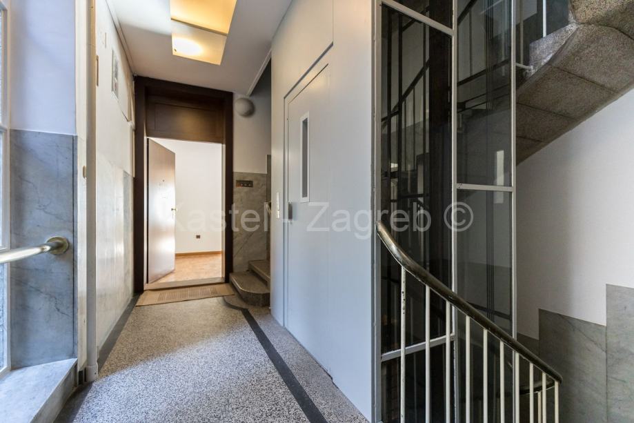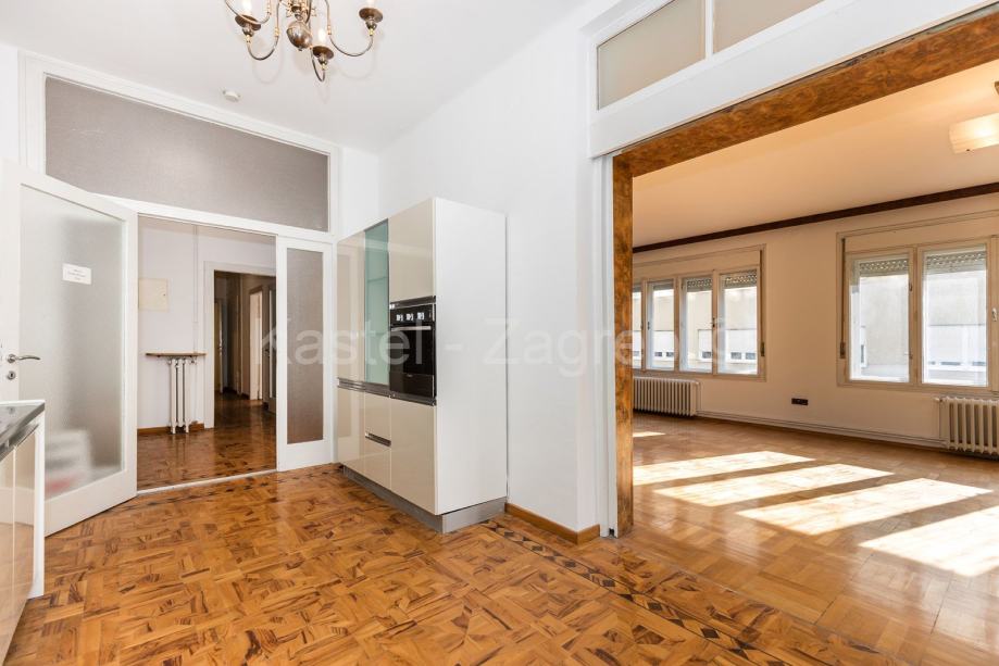 Vrlo lijep stan u samom centru Zagreba u pješačkoj zoni. Dugi kat sa liftom. Može biti stambeni prostor ili uredski prostor. Stan je na uglu zgrade, sa velikimprozorima, orjentiran na Bogovićevu i djelomično na Petrićevu. Četiri velike povezane sobe gledaju na jug, a jedna na zapad. Sve sobe imaju ulaz iz hodnika. Uređeni kupaonica i kuhinja.