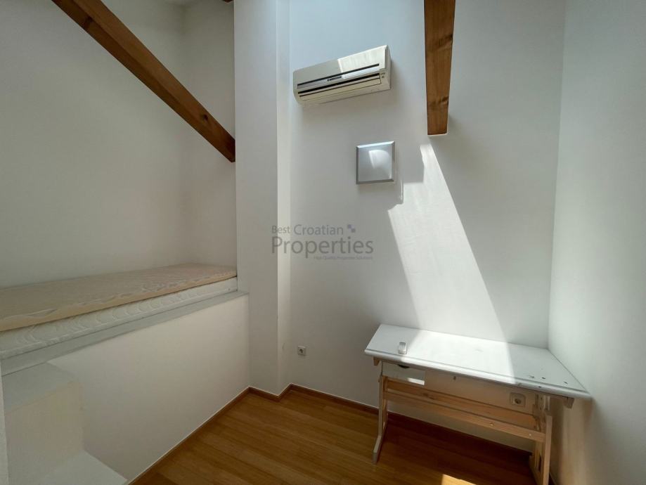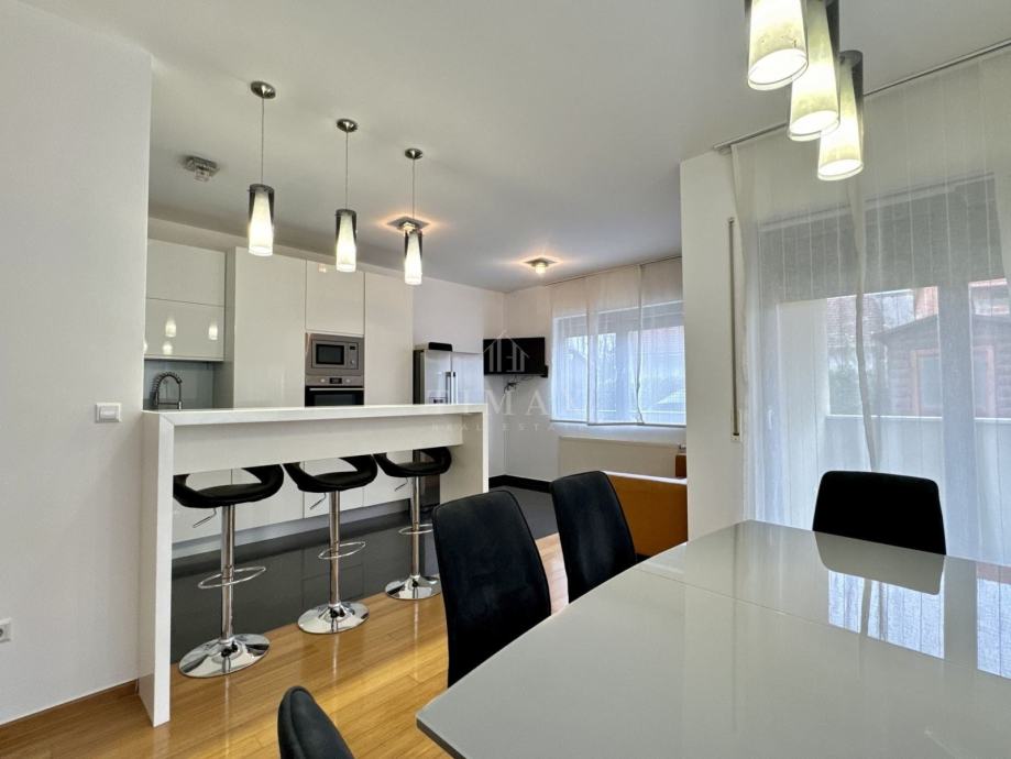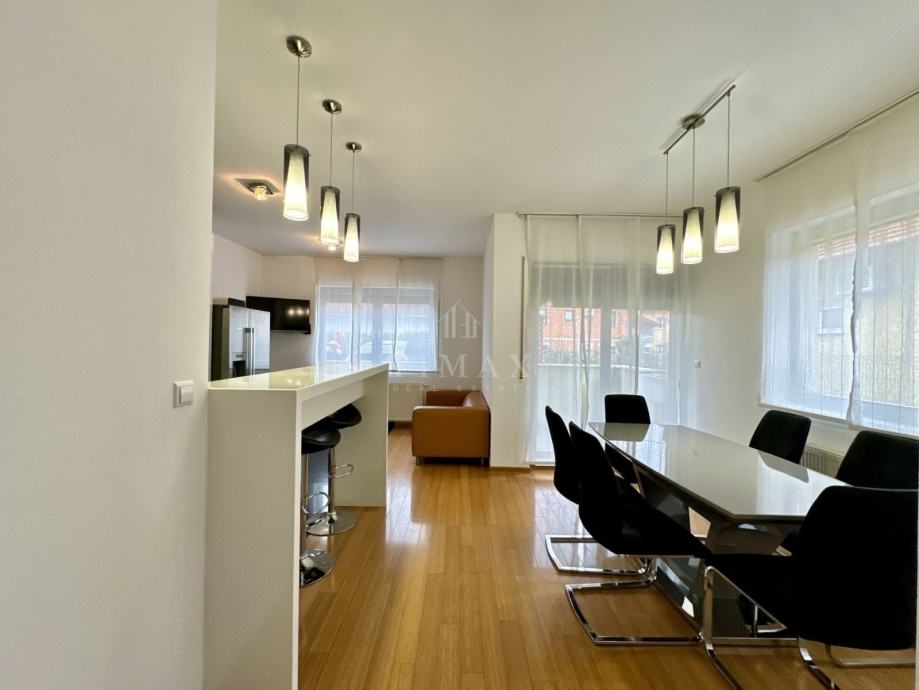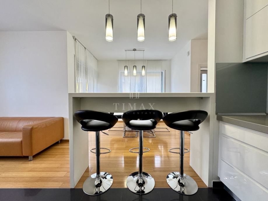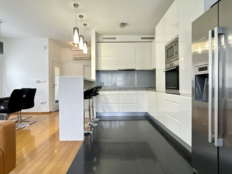 Stan je u potpunosti kvalitetno opremljen namještajem izrađenim po mjeri i drugim komadnim elementima (kutna garnitura, spring-box kreveti, stol/stolice, i dr.), modernim uređajima (ugradbena perilica posuđa, hladnjak, perilica rublja, tri klima uređaja, i dr.), kao i ugrađenim materijalima, te je odlično održavan i u potpunosti spreman za useljenje - bez ikakvih dodatnih ulaganja.