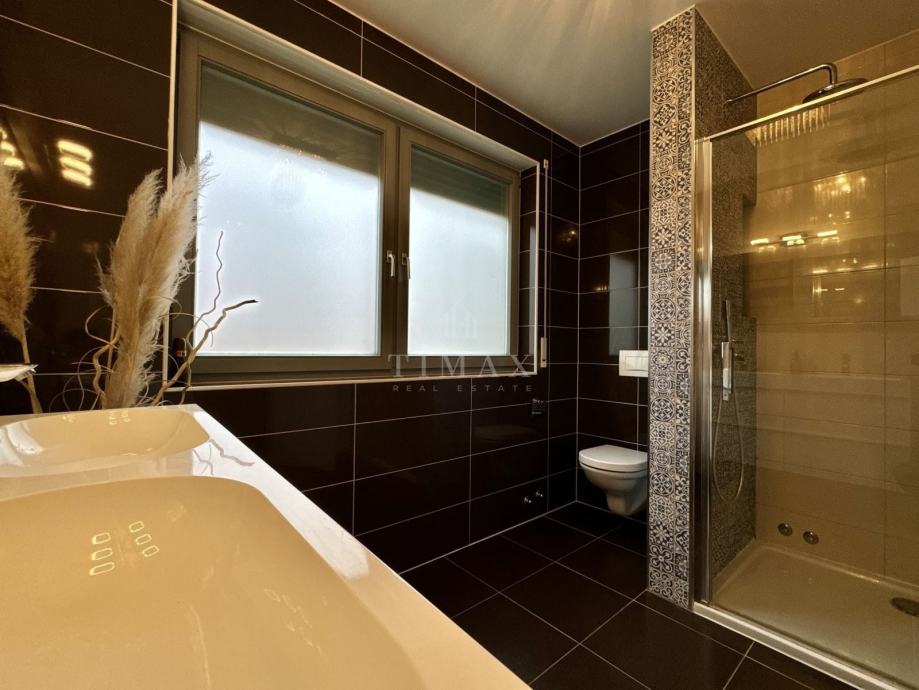 Grijanje je plinsko etažno centralno na radijatore u svim prostorijama s ugrađenim podnim grijanjem u glavnoj kupaonici na prvom katu, vlastita brojila za kontrolu potošnje (struja, voda, plin), kamen na stubištima, bambus parketi, inox rukohvati, spušteni stropovi i ugradbena rasvjeta, videonadzor, alarmni sustav, Velux krovni prozori, 10cm toplinska izolacija, dva parkirna