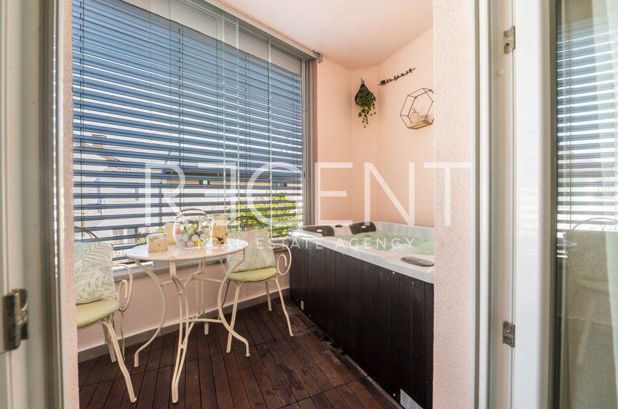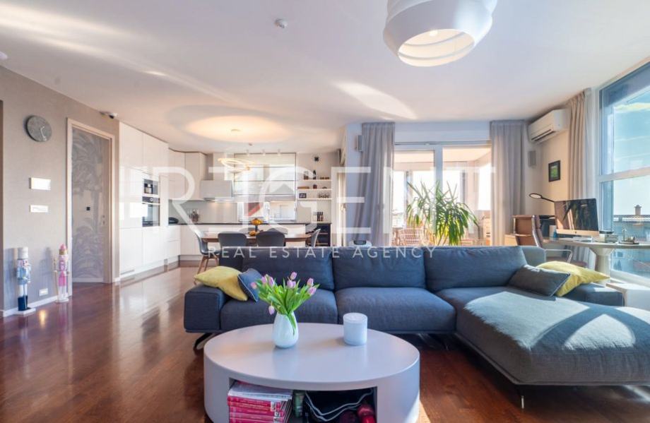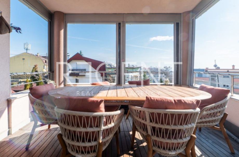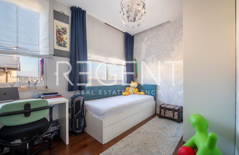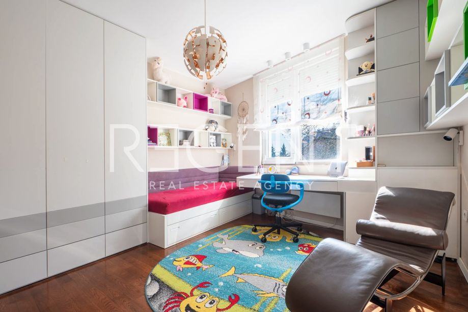 Iznajmljuje se luksuzan, potpuno namješten četverosoban stan u mirnom dijelu Zagreba, Sveti Duh, Trsje, okružen zelenilom i s prekrasnim pogledom. Stan se nalazi na prvom katu manje stambene zgrade s četiri stana, prostire se na 125 kvadrata i nudi vrhunski dizajn te modernu opremu. Stan se sastoji od prostranog dnevnog boravka s velikom staklenom stijenom i otvorenom kuhinjom, tri spavaće sobe, kupaonice, vešeraja s perilicom i sušilicom, jedne terase i dva balkona. Na zatvorenoj lođi povezanoj s roditeljskom sobom nalazi se jacuzzi. Posebne značajke stana su vinski hladnjak i ugradbeni akvarij.Opremljen je stropnim grijanjem i hlađenjem putem dizalice topline, a sigurnost osiguravaju video nadzor i alarmni sustav koji se mogu upravljati preko mobitela. Stan ima električne rolete, protuprovalna vrata i vrhunski dizajnerski namještaj renomiranih brendova poput BoConcepta, Ditrea i Vitre. Ugradbeni ormari izrađeni su po mjeri.Uz stan dolaze tri vanjska nenatkrivena parkirna mjesta te privatna ograđena šumica s trampolinom i opremom za djecu. U dvorištu se nalazi i roštilj.Prosječni iznos režija je 700 eura. Za više informacija i dogovor oko razgledavanja slobodno se javite.Za više informacija, kontaktirajte našeg agenta na brojeve telefona: