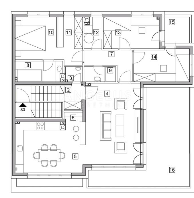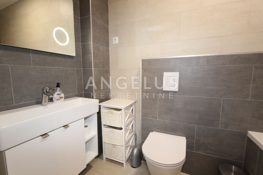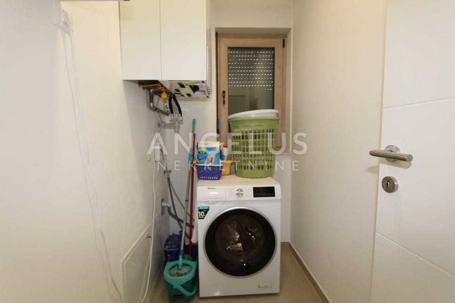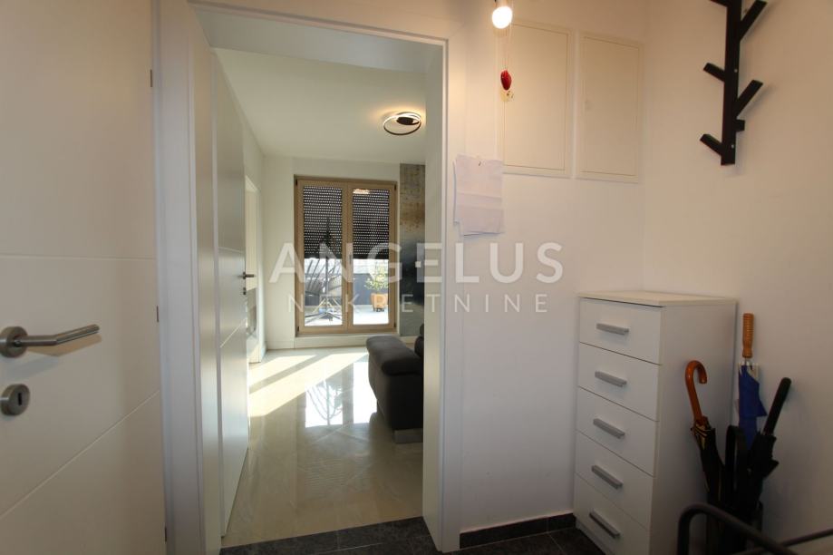 Stan se nalazi na drugom katu zgrade sa samo 3 stana a sastoji se od: ulaznog prostora sa garderobom, wc-a za goste, prostranog dnevnog boravka s kuhinjom, 3 spavaće sobe, dvije kupaonice, vešeraja, dvije terase ( 3,61 m2 i 29 m2), spremište u prizemlju zgrade 21,73 m2, garaže u prizemlju 20m2 i vanjskog parkirališnog mjesta.