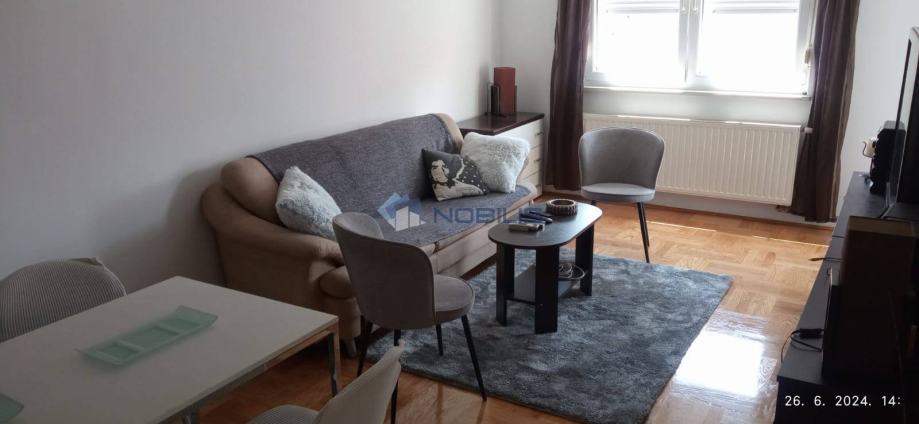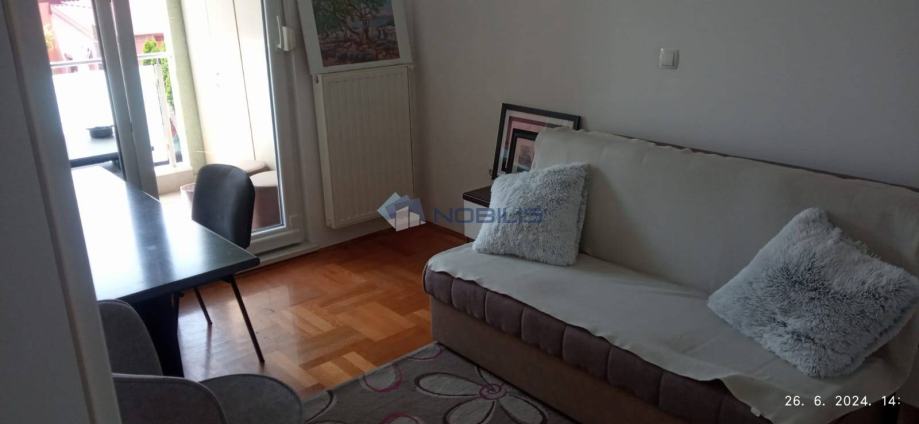 Zagreb, Trešnjevka - iznajmljujemo stan u visokom prizemlju novije zgrade. Stan se sastoji od ulaznog hodnika, dvije spavaće sobe, kupaonice, dnevnog boravka. Cijeli stan je djelomično namješten (u svakoj sobi je bračni krevet na razvlačenje) te je uredno održavan kao i sama zgrada. Lokacija je izvrsna za obiteljski život, odmah preko puta se nalazi park za djecu i za pse, ispred se nalazi autobusno stajalište za smjer Novi Zagreb, Mažuranićev trg u centru i Črnomerec, a 10 minuta pješice tramvaj koji vodi direktno do centra. Iza zgrade se nalazi jedno parking mjesto. Uz stan je i ostava u prizemlju. Zgrada ima energetski certifikat A+ pa su režije vrlo niske.
