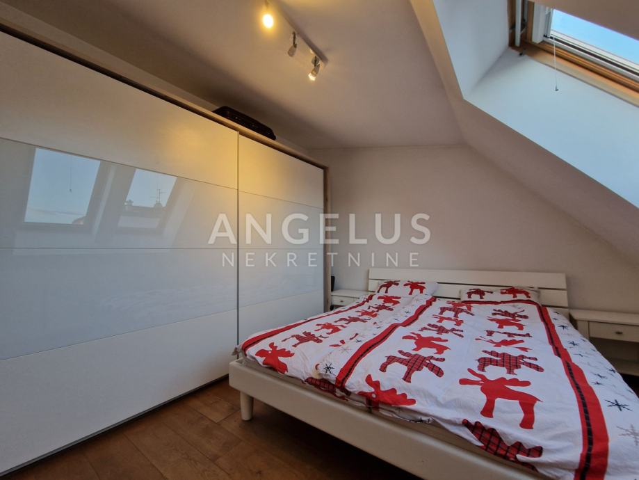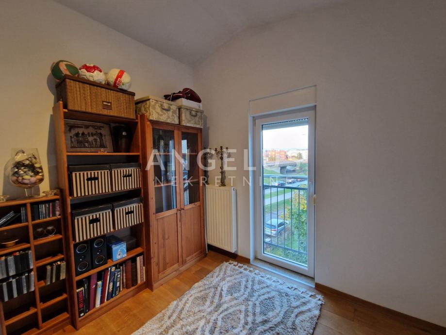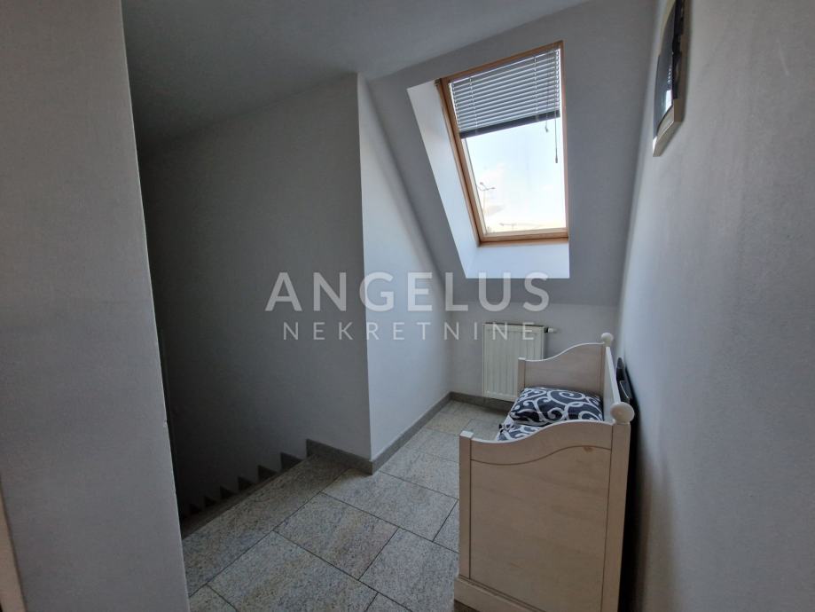ulaza, ulaznog halla, dnevnog boravka sa blagovaonicom i kuhinjom, predprostora sa garderobom, 3 spavaće sobe, kupaonice sa wc-om i vanjskog parkirnog mjesta u ograđenom dvorištu zgrade pod videonadzorom i ostave. Visina stana je od 2,70m do 3,00 m a najniža točka u stanu je 2,20m. Energetski certifakat A. NKP stana iznosi 88m2 i parkirno mjesto 12,50m2. Stan je ugodan i svijetao sa odličnim veluks prozorima, trostrane orijentacije sa puno dnevnog svijetla. Sva brojila odvojena (struja, plin, voda) Stan je odlično održavan. Dokumentacija uredna, vlasništvo 1/1.