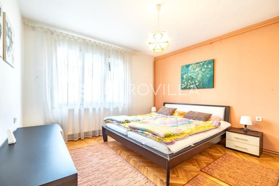 Trešnjevka two-bedroom apartment of 56 m2 on the high ground floor of a quality built and maintained house from 1972 without an elevator. The apartment includes a 61 m2 unfinished attic connected by folding stairs, a 14.60 m2 garage and a 6.50 m2 garden.It consists of an entrance hall with access...