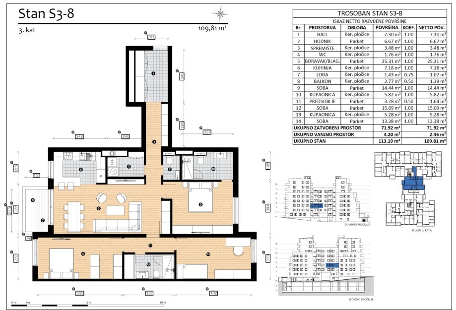 HERITAGE - Nova era stanovanja na Trešnjevci Trešnjevka, na atraktivnoj lokaciji gradi se zgrada s ukupno 110 stanova. Savršen spoj udobnosti i luksuza dostupan svima. Planirano useljenje veljača 2027. Stan S3-8 četverosoban stan na trećem katu zatvorene površine 71,92m2 s balkonom 2.77...