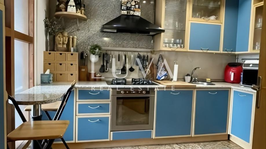 Sastoji se od dnevnog boravka, kuhinje, tri spavaće sobe, loggie i kupaonice, a nalazi se na prvom katu manje stambene zgrade s ukupno četiri stana.