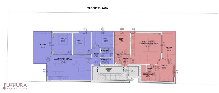 Zagreb - Trešnjevka, prodaje se trosobni stan od 65,30 m2 na drugom katu stambene zgrade u izgradnji, planirano useljenje 03/2026 godine.