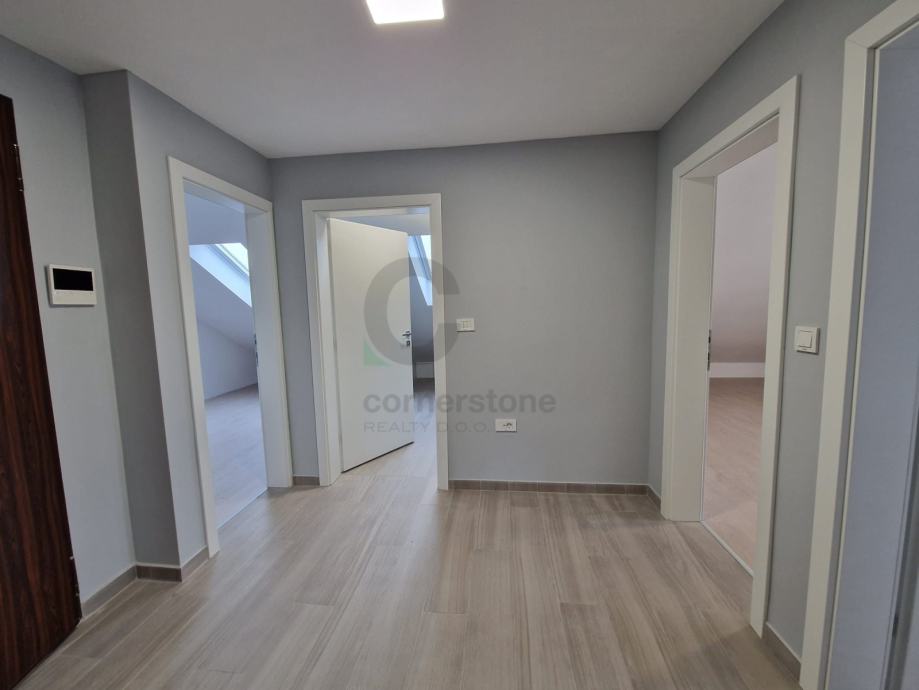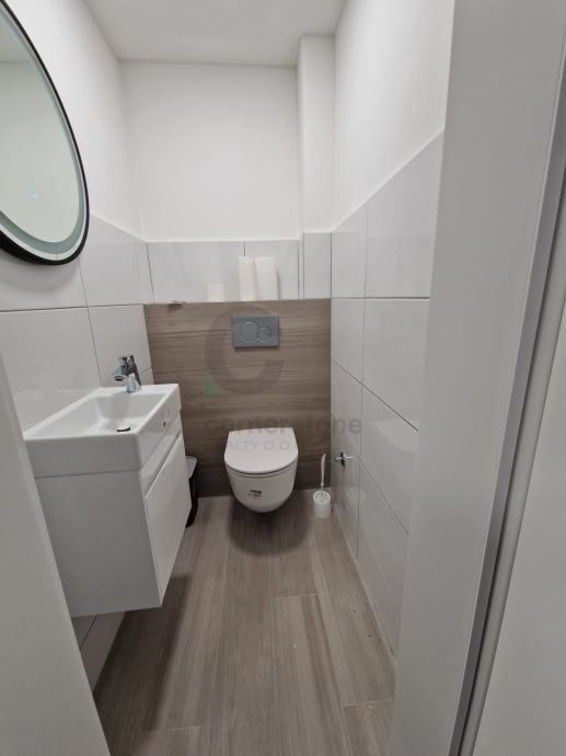Sastoji se od tri prostorije, wc-a i kupaonice sa wc-om i balkona. Svaka je prostorija klimatizirana, a grijanje je centralno etežno plinsko.